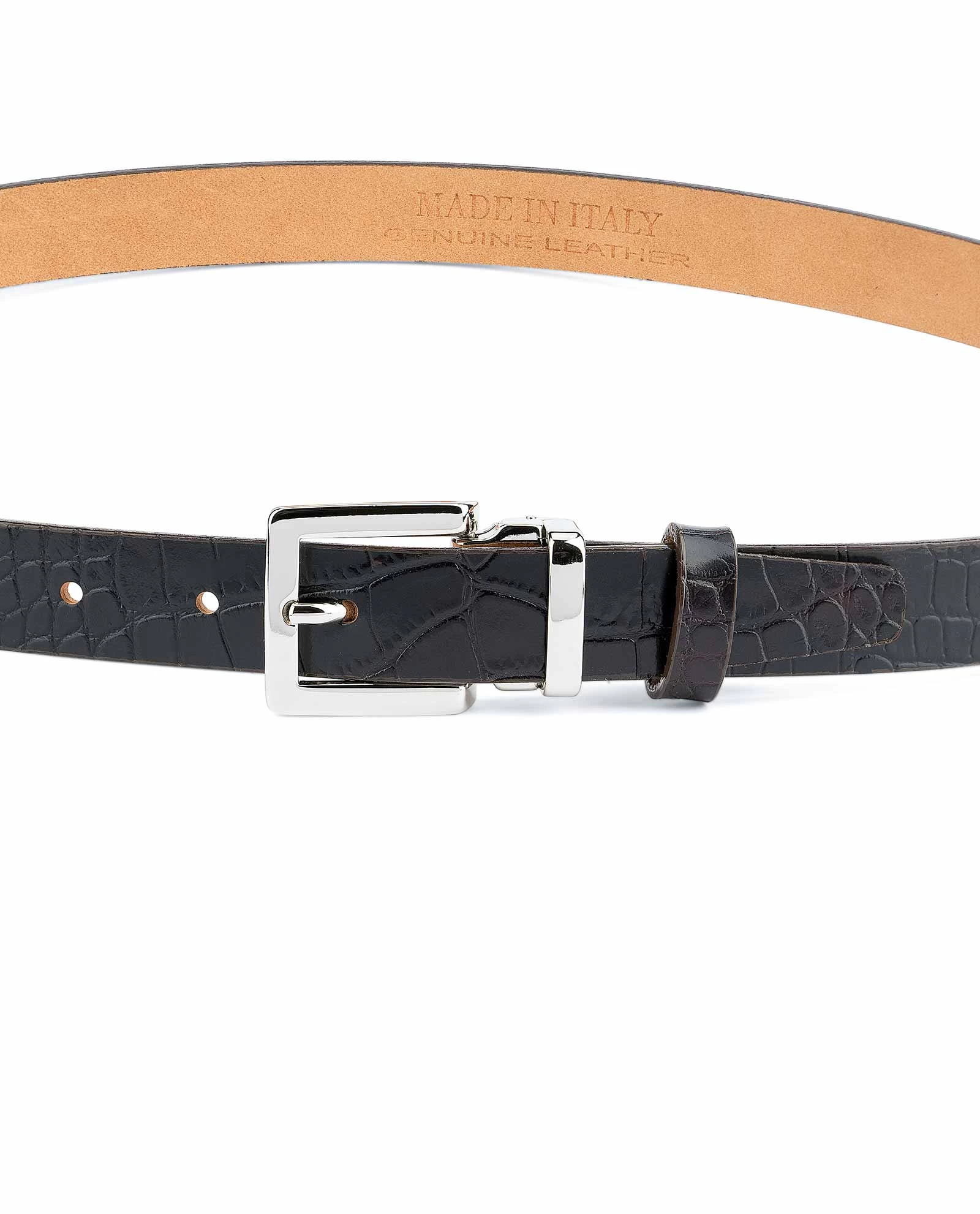 1 inch croco belt in dark brown embossed leather by the Capo Pelle brand is produced in Italy, it is made of high quality leather. The belt has 1.0″ (2.5 cm) height. The main feature of this belt is its croco-embossed leather texture – it is pleasant to touch and easy to match the belt with any type of clothes.