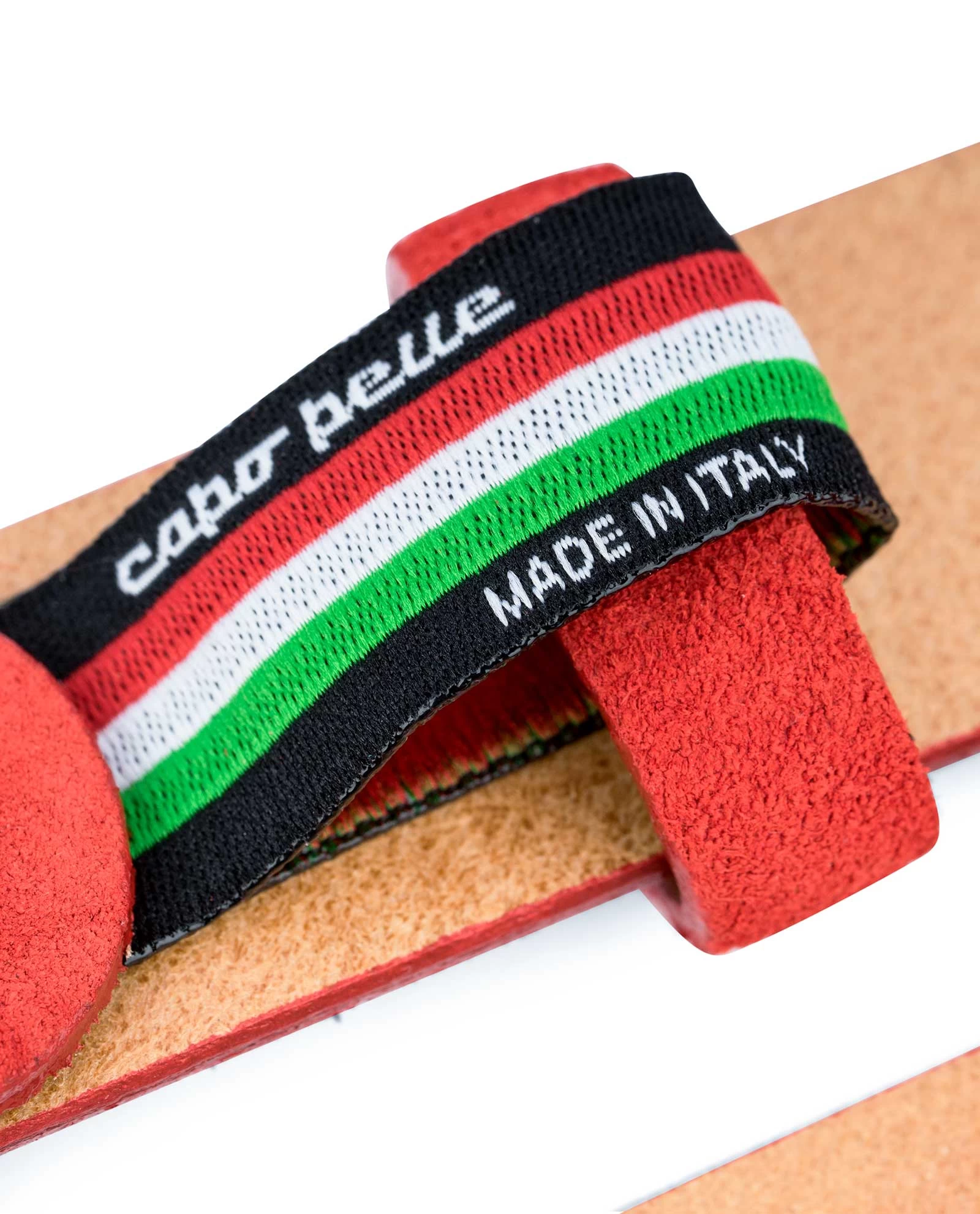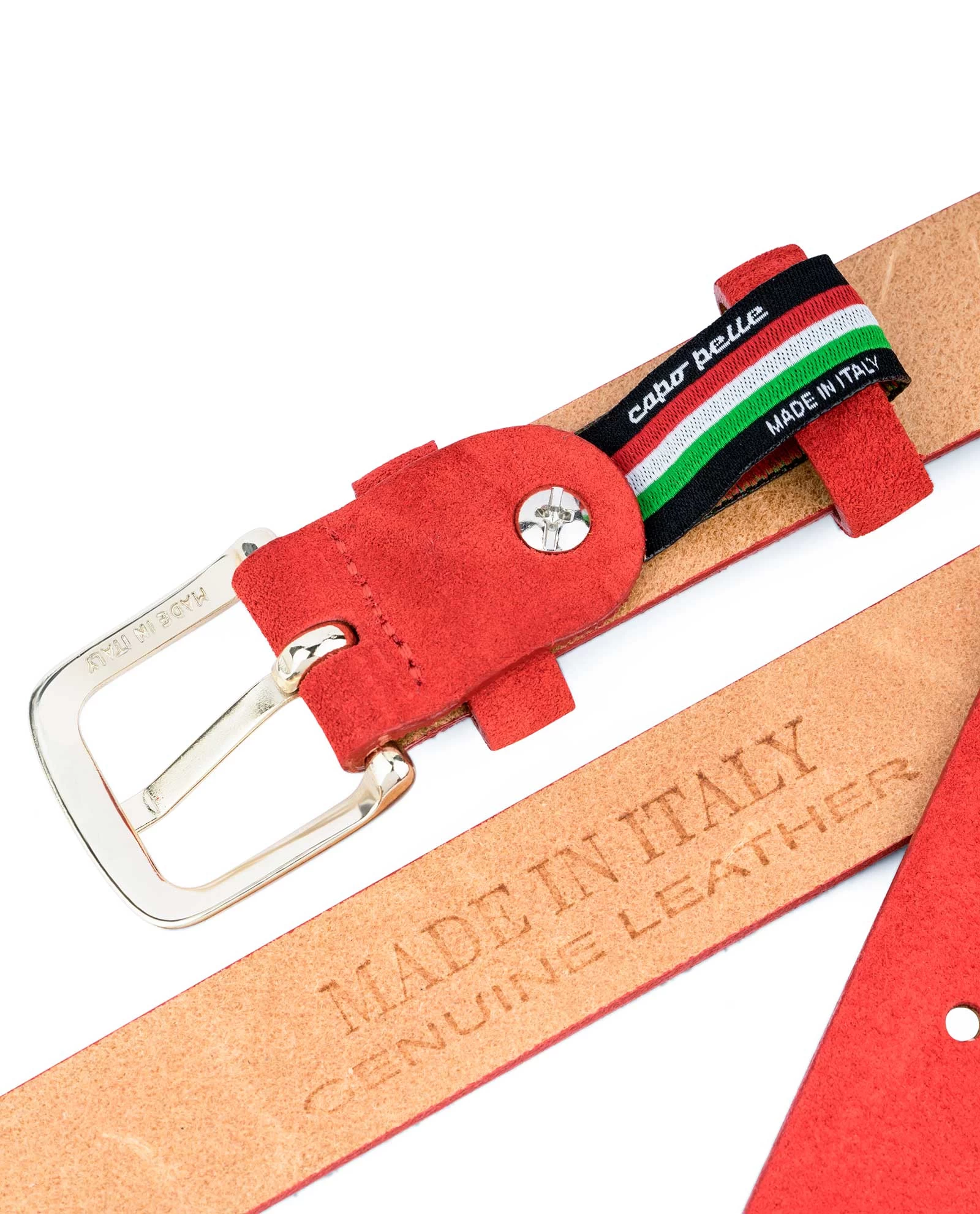 1 inch red suede belt presented by the famous Italian brand Capo Pelle is a perfect choice for almost any woman. It is made of genuine suede leather, its height is 1.0″ (2.5 cm).