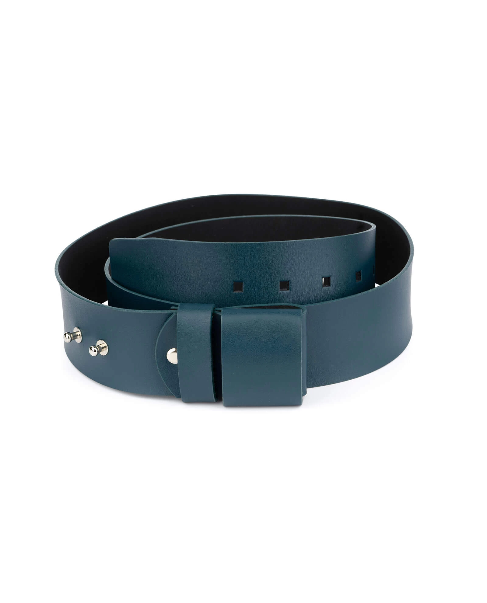No matter the look, this 2 inch womens dark blue belt without buckle is a must-have accessory for your wardrobe. The dark blue color and timeless design make it a great addition to any collection and can be worn for years to come. Invest in a piece that will last and make sure to pair it with your favorite outfits for a timeless and polished finish.