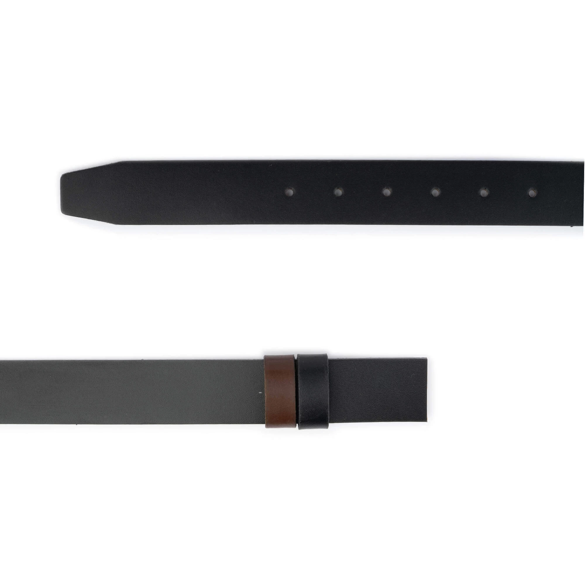 Buy 32 Mm Brown Black Reversible Leather Belt Strap at LeatherBeltsOnline.com – 1 1/4″ (3.2 cm) wide – Brown reversible to black color – Genuine leather – No buckle – Model code BROBLA32CUTTZE