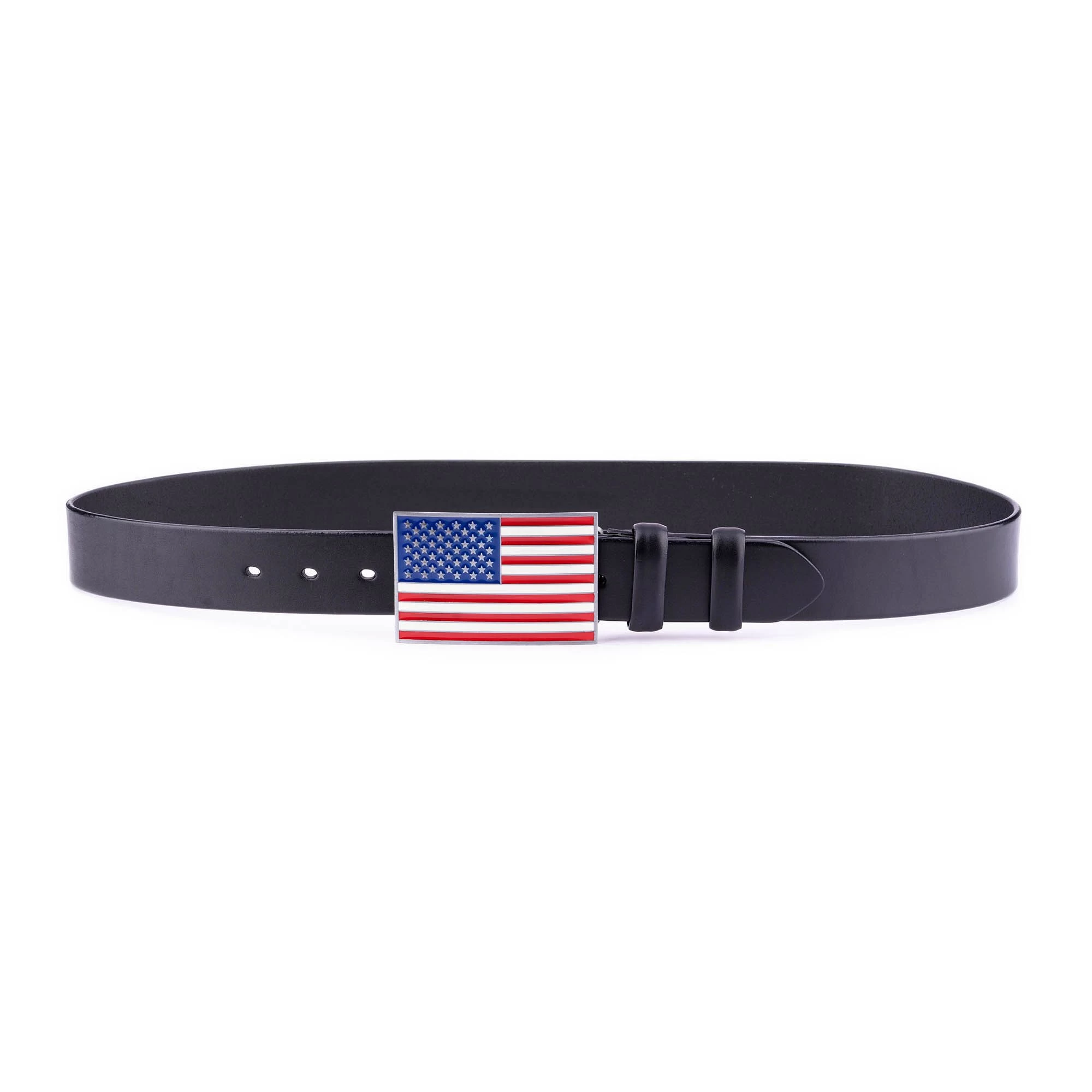 Buy American Flag Leather Belt – Thick Black Calfskin at LeatherBeltsOnline.com
