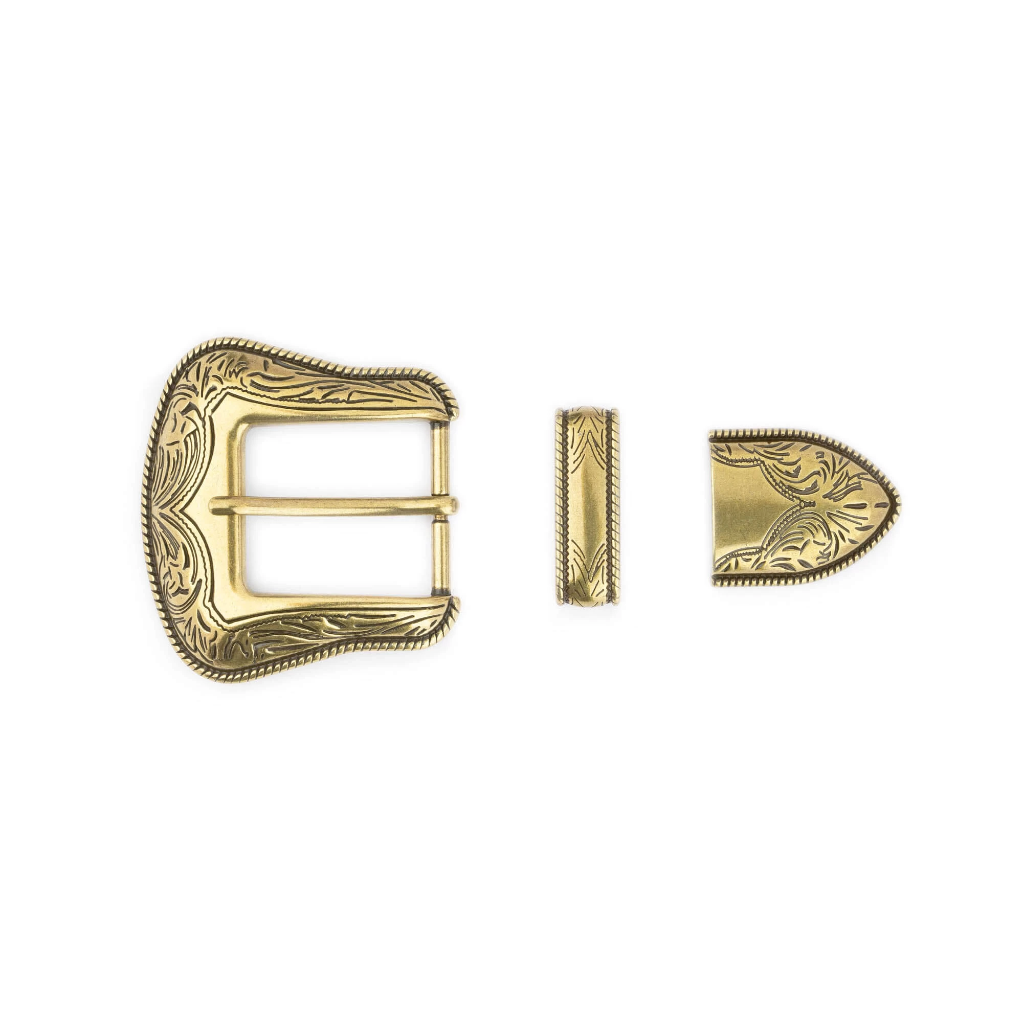Buy Antique Gold Western Belt Buckle Replacement 3 Piece Set 35 Mm at LeatherBeltsOnline.com