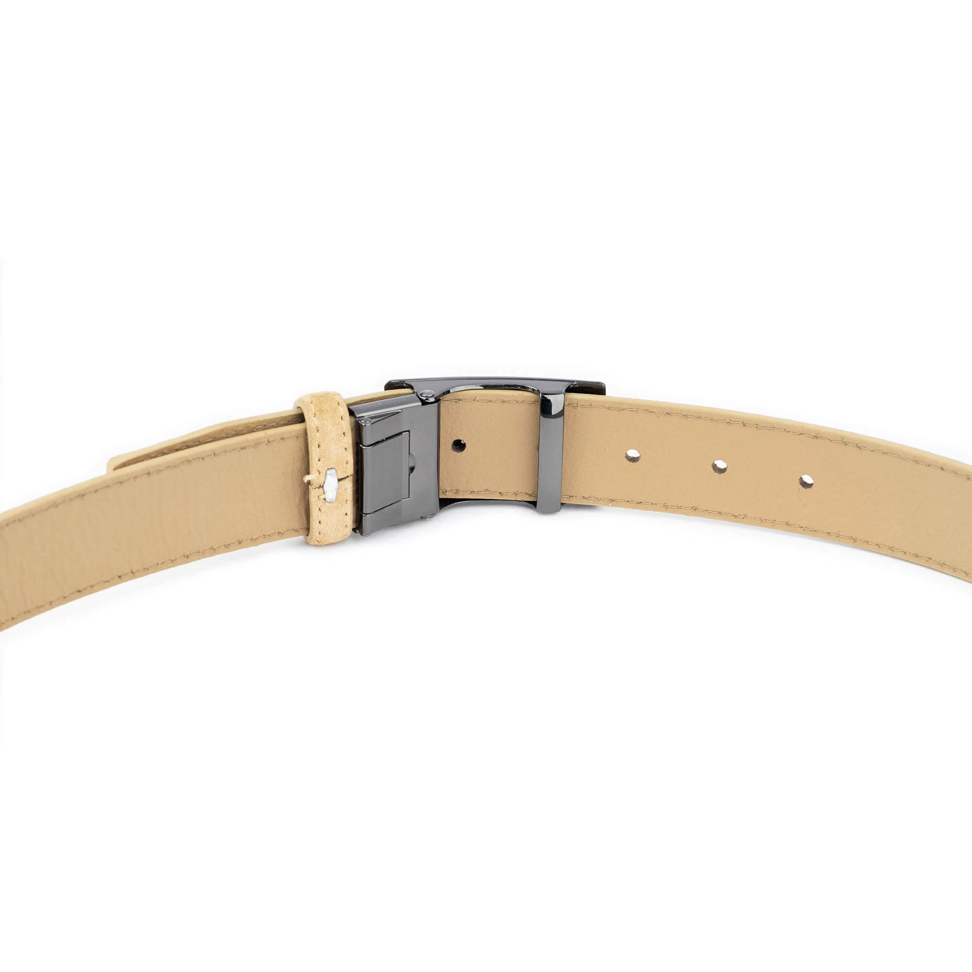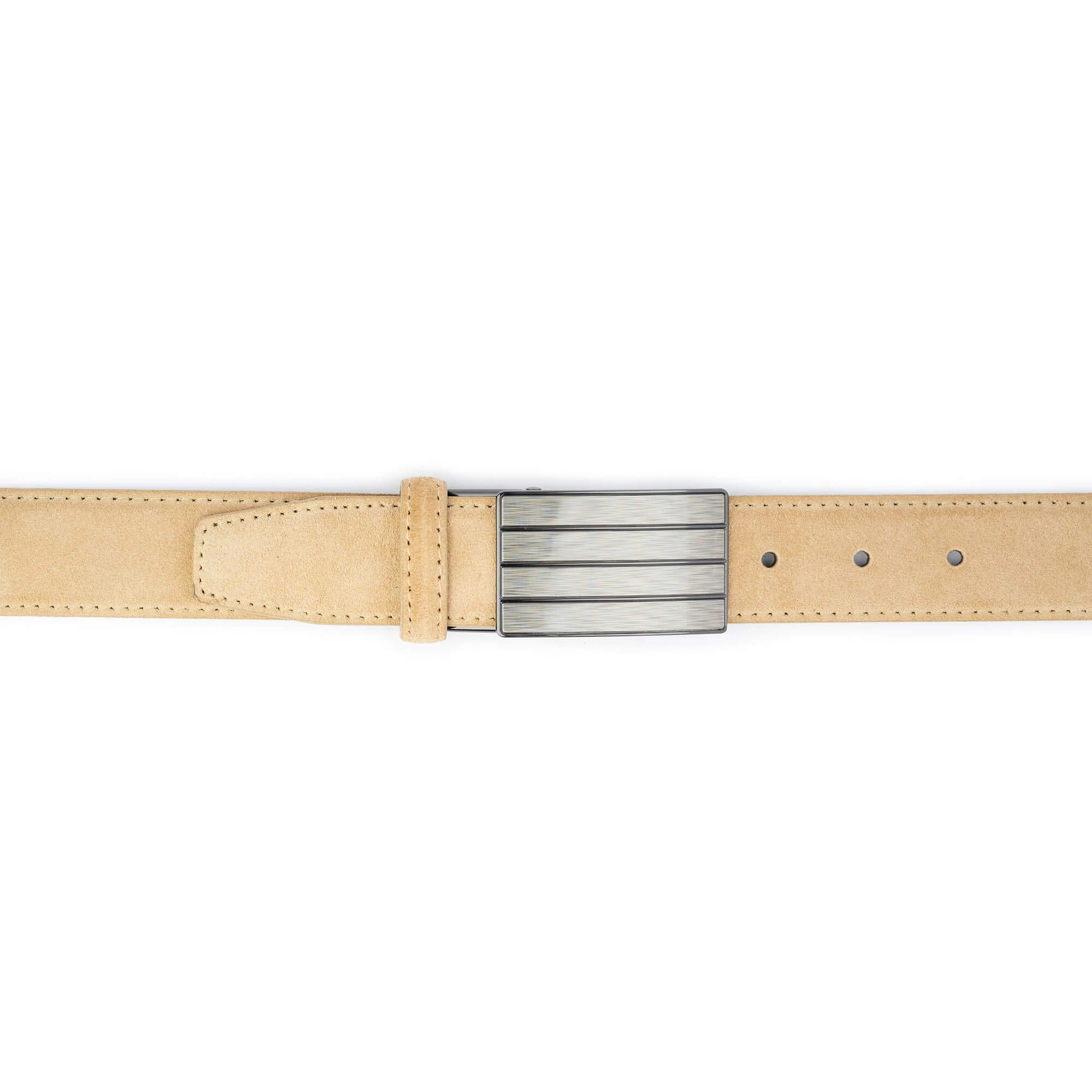 Buy Beige Suede Ratchet Belt With Buckle at LeatherBeltsOnline.com