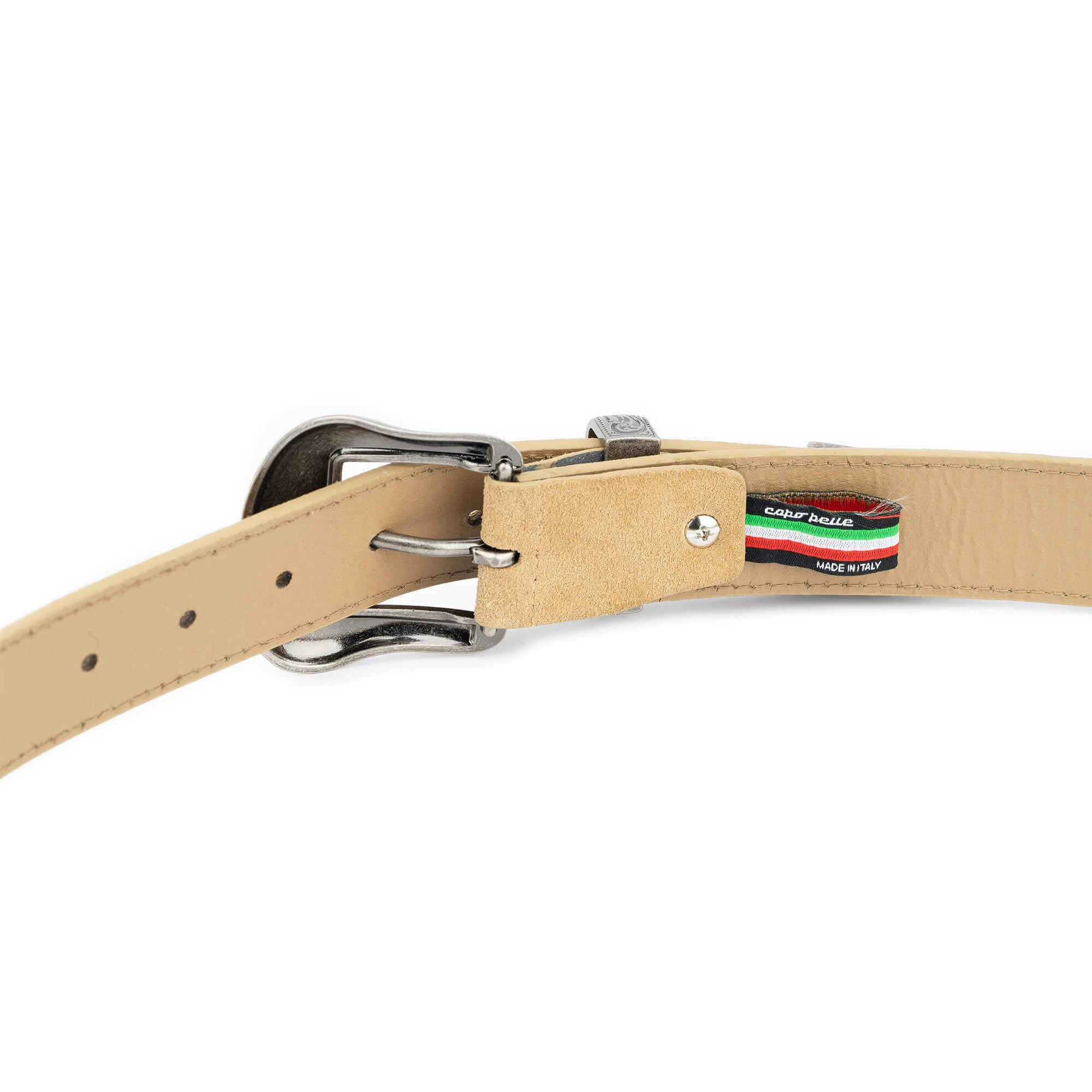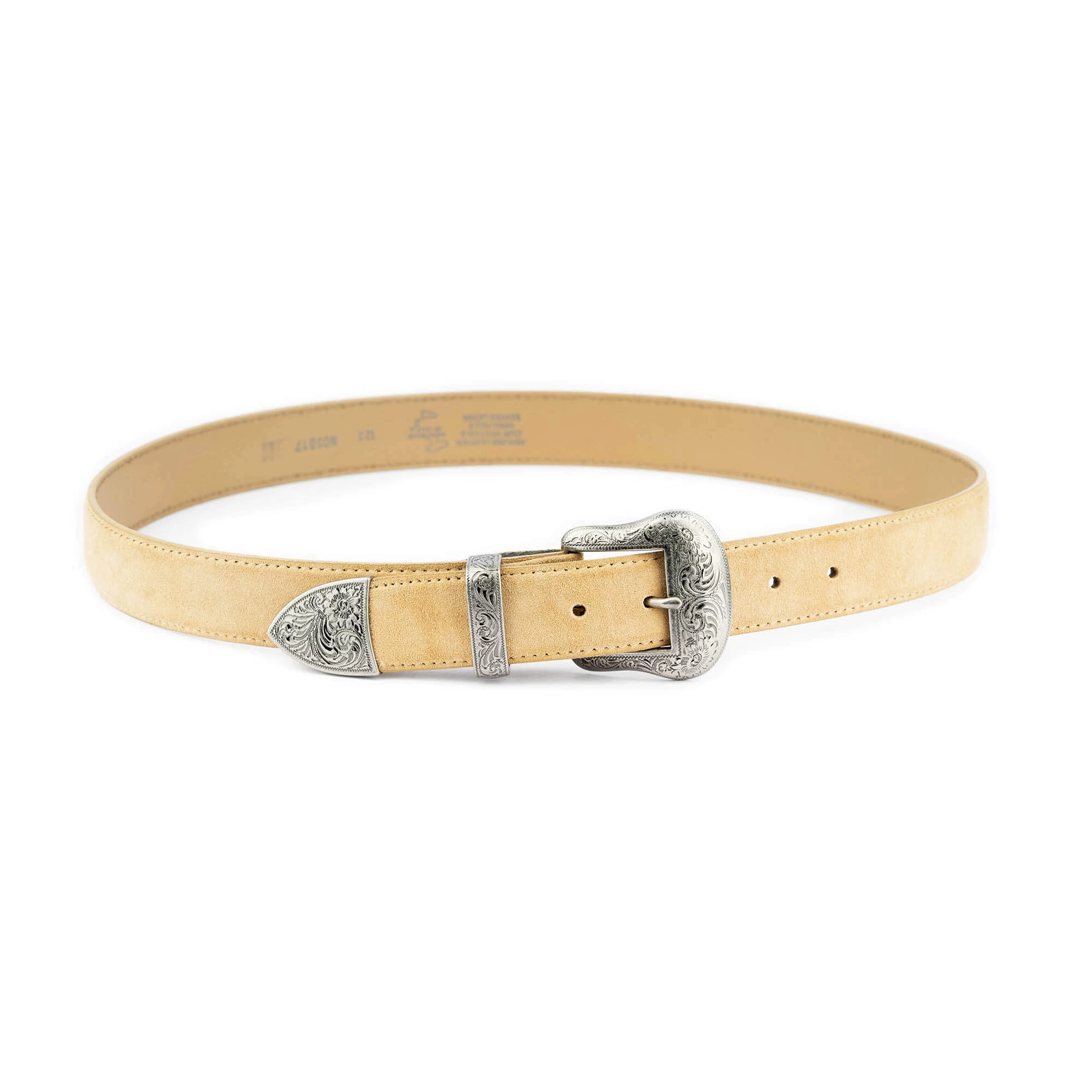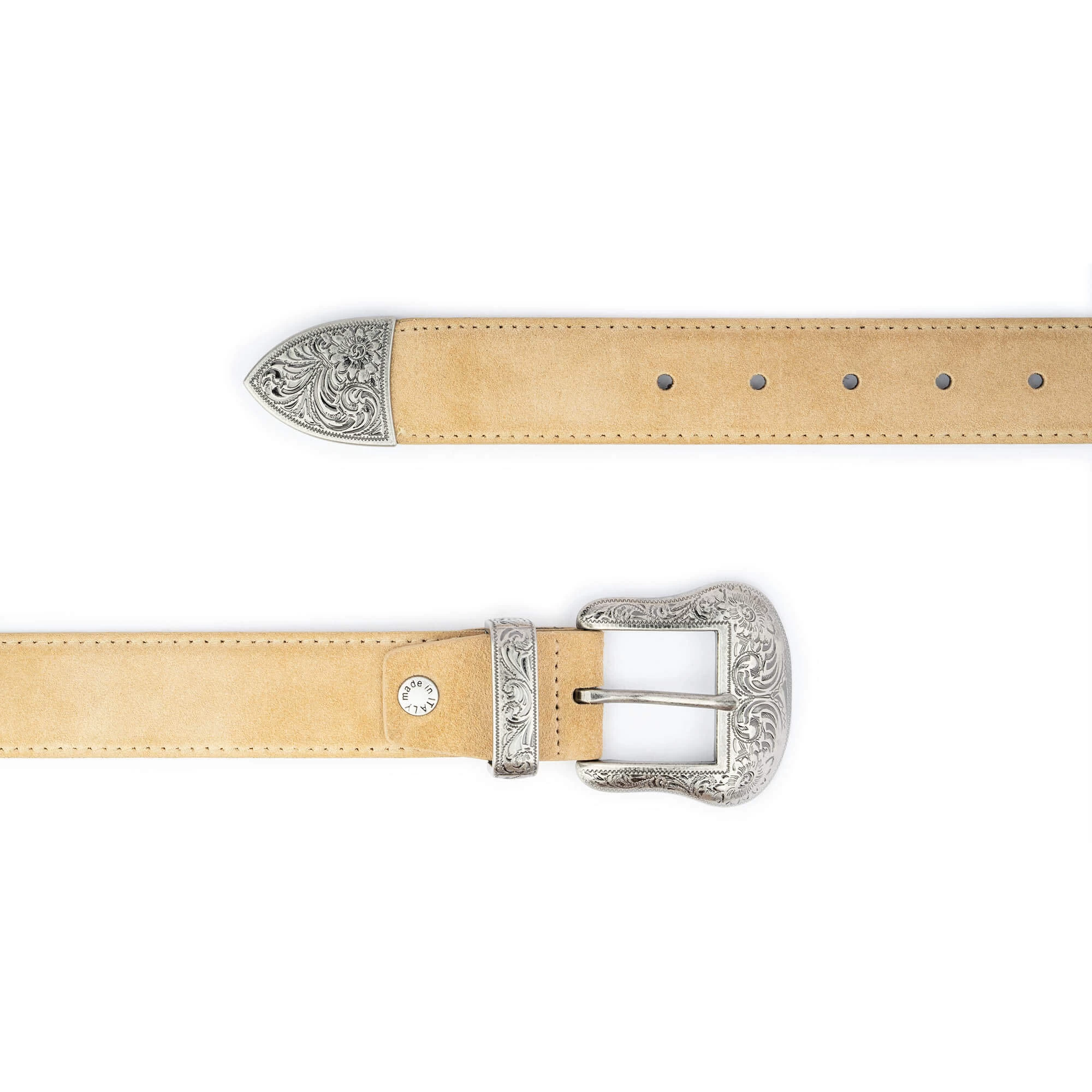 Buy Beige Suede Western Belt With Silver Buckle at LeatherBeltsOnline.com