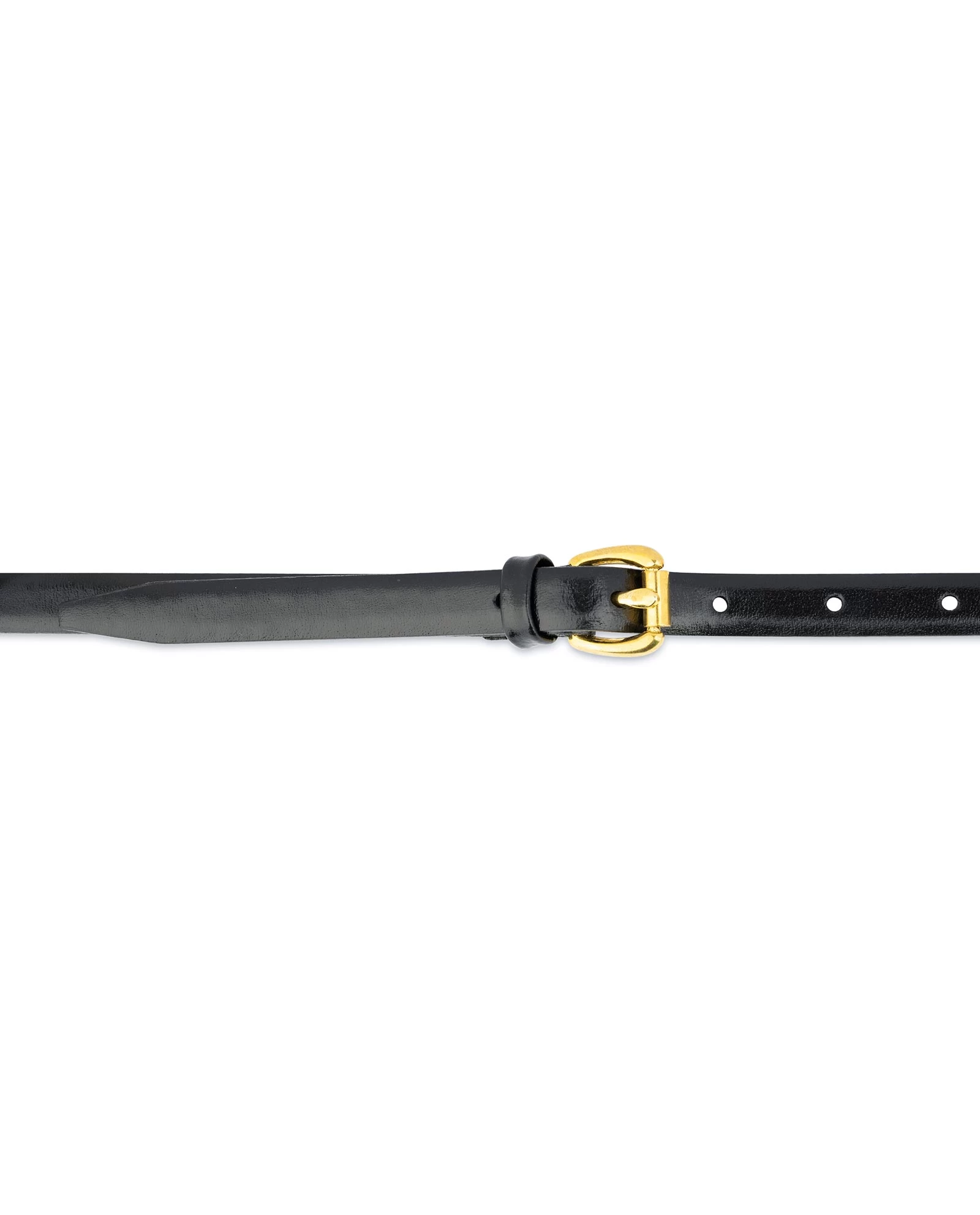 The belt with brass buckle is designed by the Capo Pelle brand, an Italian manufacturer of leather goods. The masters have crafted this belt from genuine leather of the finest quality. The strap is decorated with a roller belt buckle, a solid and durable fitting designed for extended periods of frequent use. It’s a removable buckle easy to rearrange by using a screwdriver if necessary. Place the belt around the waistband and adjust it: a leather loop and some ready-made holes for the buckle prong will hold the belt in place. The female belt is available in 5/8″ | 1.5 cm width. This elegant model is offered with a branded black dust bag and a belt authenticity card. By purchasing this women’s belt at LeatherBeltsOnline.com, you may give an excellent gift to your girlfriend, sister, mother, or co-worker and write some warm greetings on the paper tag.
