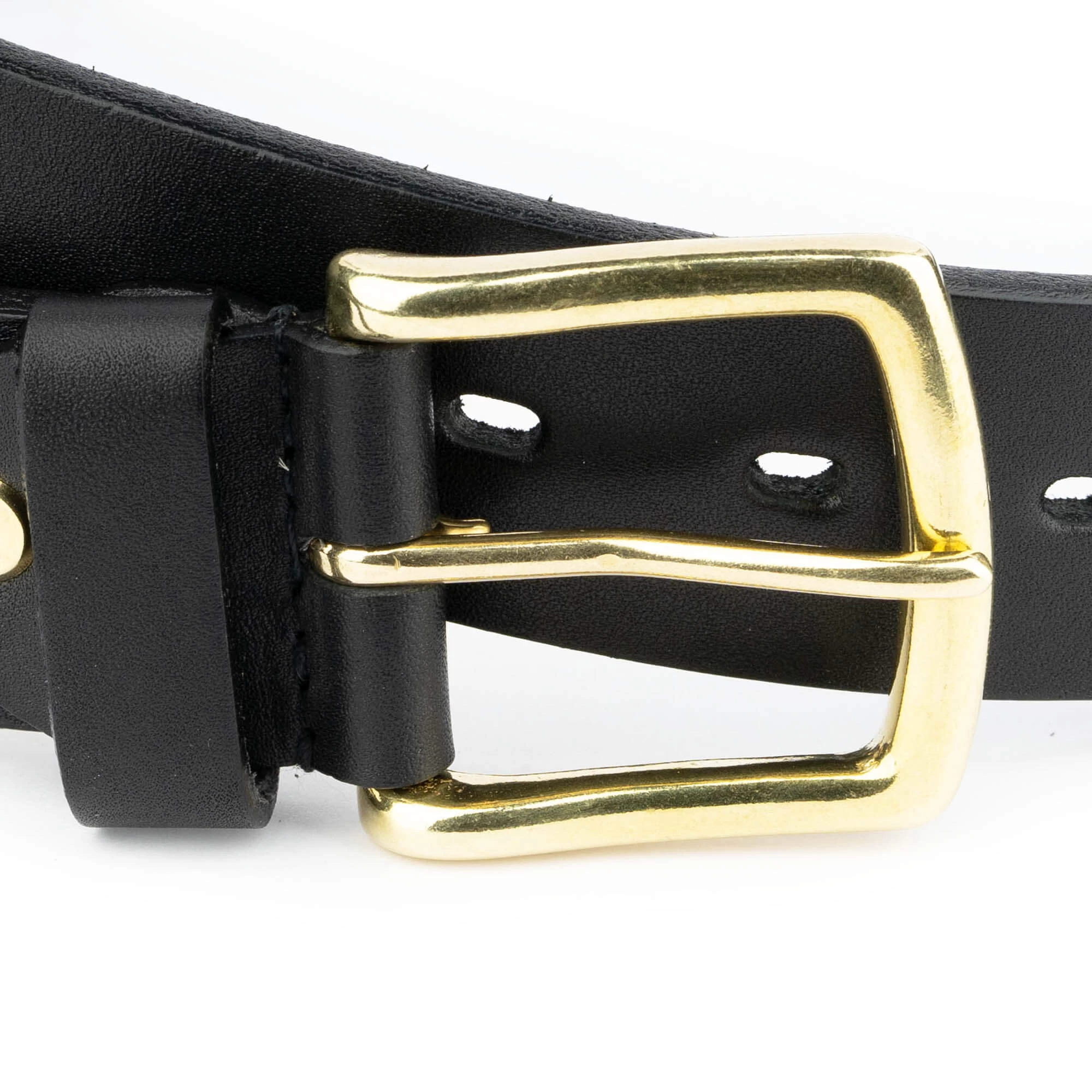 Buy Black Belt With Brass Buckle | Full Grain Leather 40 Mm at LeatherBeltsOnline.com