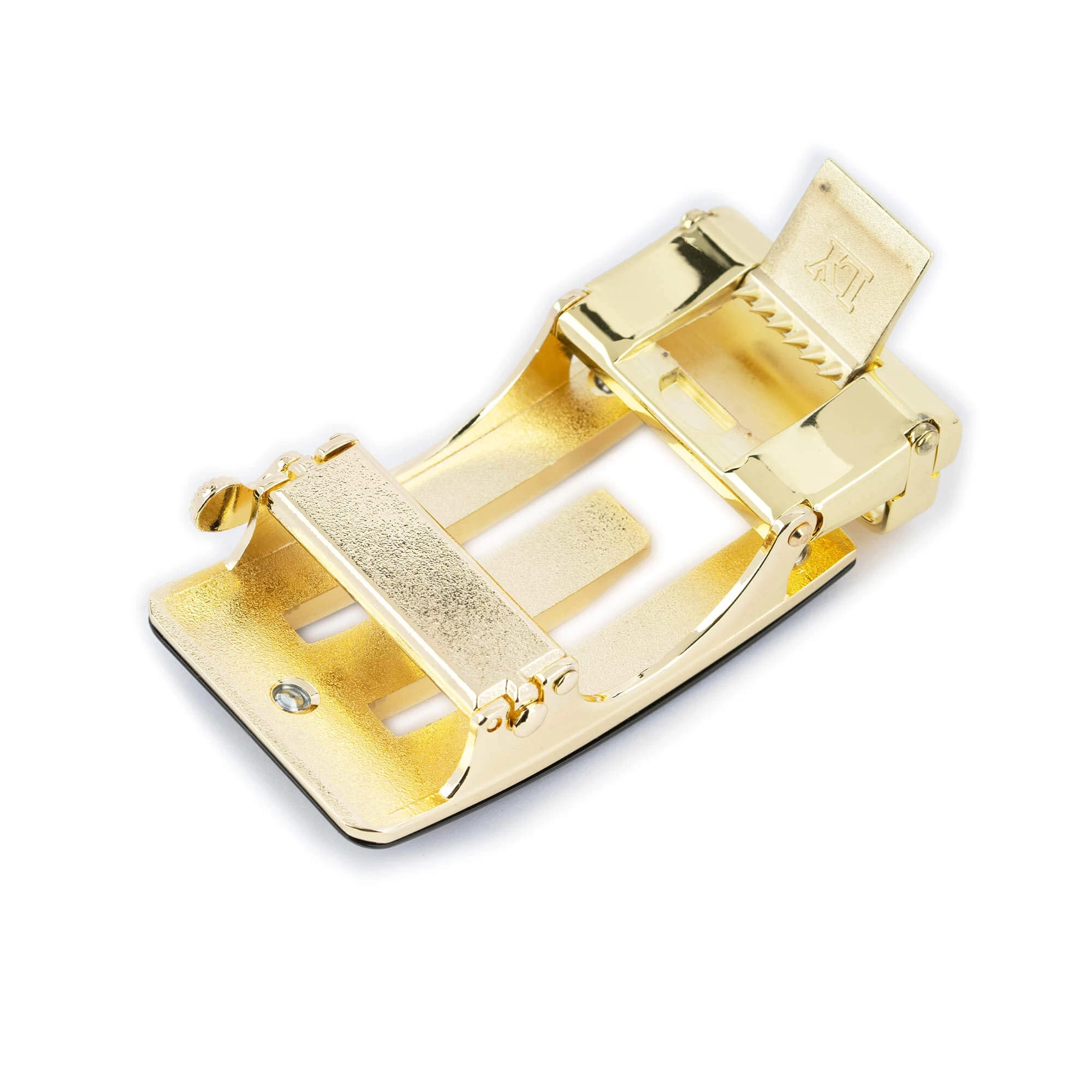 Buy Black C Gold Ratchet Buckle For Leather Belt at LeatherBeltsOnline.com – Inner width 1 3/8” | 3.5 cm – Gold black color – Metal – Model code LTCGOL35RATBLA