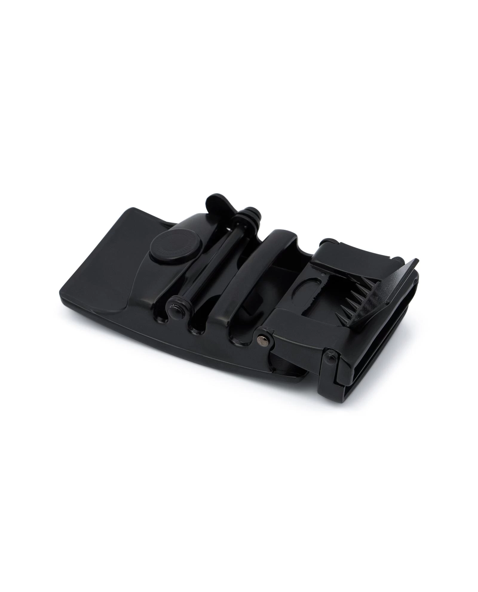 This buckle model is designed for the ratchet belt straps. The automatic belt buckle is a complex mechanism with teeth that allows you to set up the belt and to lock it in the right place. It is used with the strap, designed with a special ratchet insert on the inner side of the canvas. You may release the belt by pulling a release lever on the buckle and sliding the strap out. The ratchet belt buckle is crafted with solid metal. The buckle front plate is a black matte color, of rectangular shape and has the dimensions of 2.7″ x 1.6″| 6.9 cm х 4.1 cm.