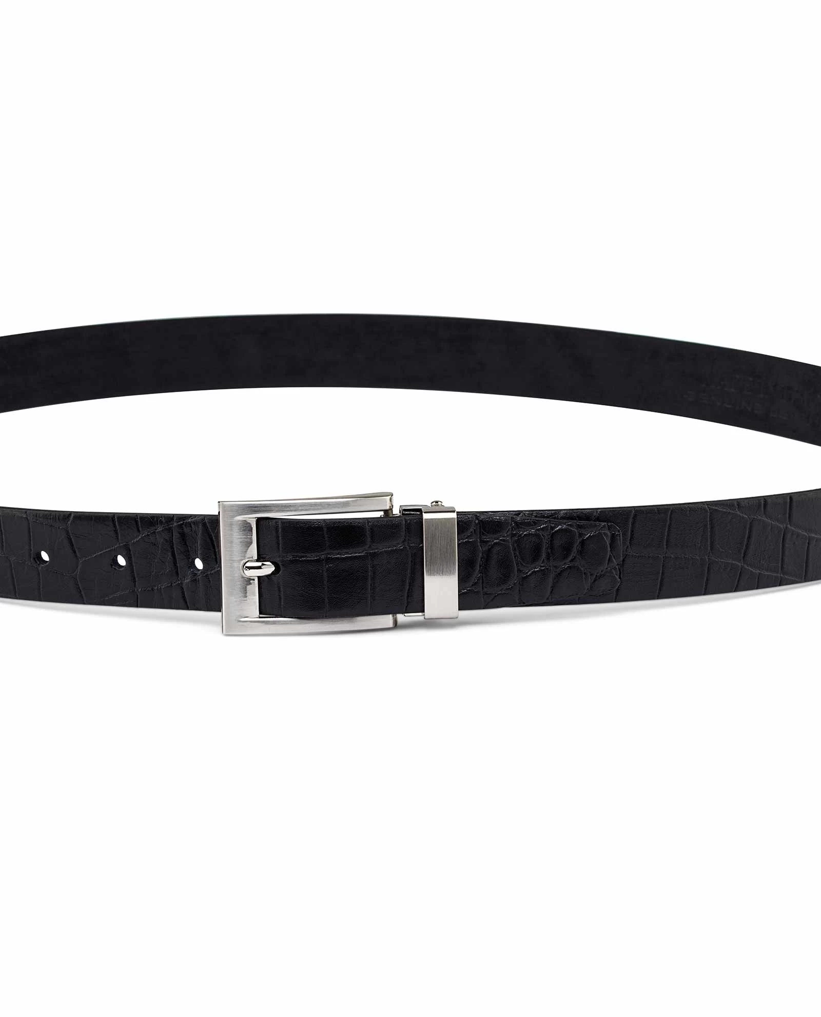 Sophistication meets style and quality; the black croc effect thin belt should not miss in any gentleman’s wardrobe. Capo Pelle is ranked as the most quality oriented manufacturing Italian company and it supersedes its reputation by a whole mark. Incorporating genuine Italian leather material in the make, the leather is carefully cut out to achieve the desired size thereafter tanned with much precision giving it that rich color it possess. The quality of this crocodile embossed leather belt is definitely unquestionable as you are assured of durability for ages to come and also it does not split or crack easily. Topping the men’s dress belts list, this particular belt comes with croco embossments running through its length adding rich texture to it. The belt feature a silver polished buckle that completely breathtaking and brings the whole outfit to a focal point.