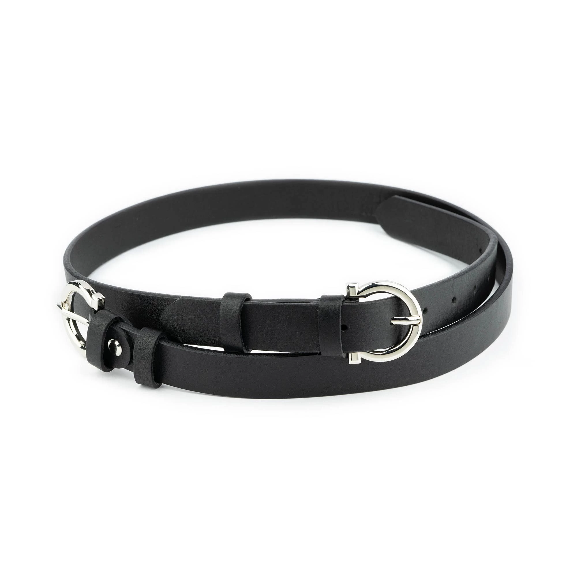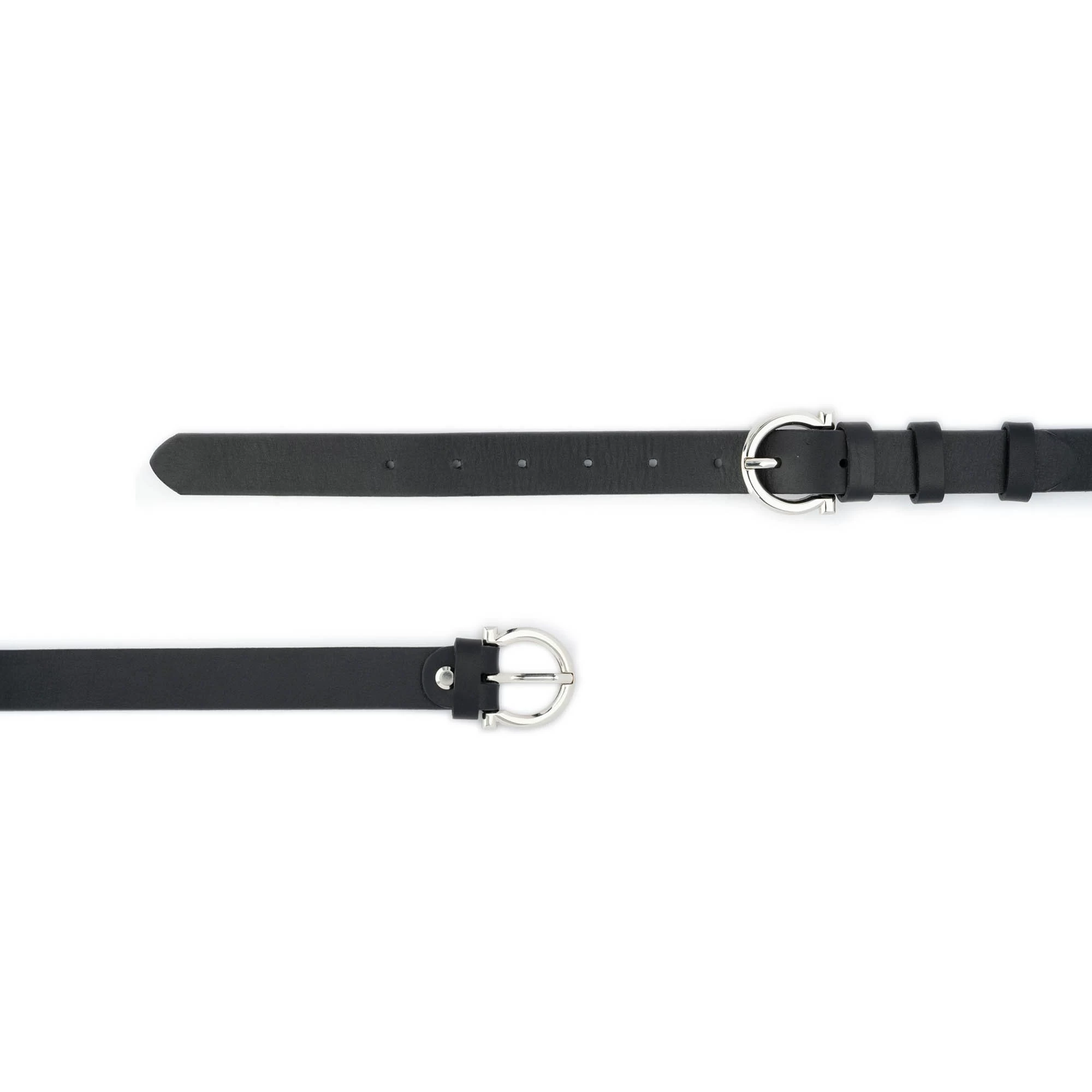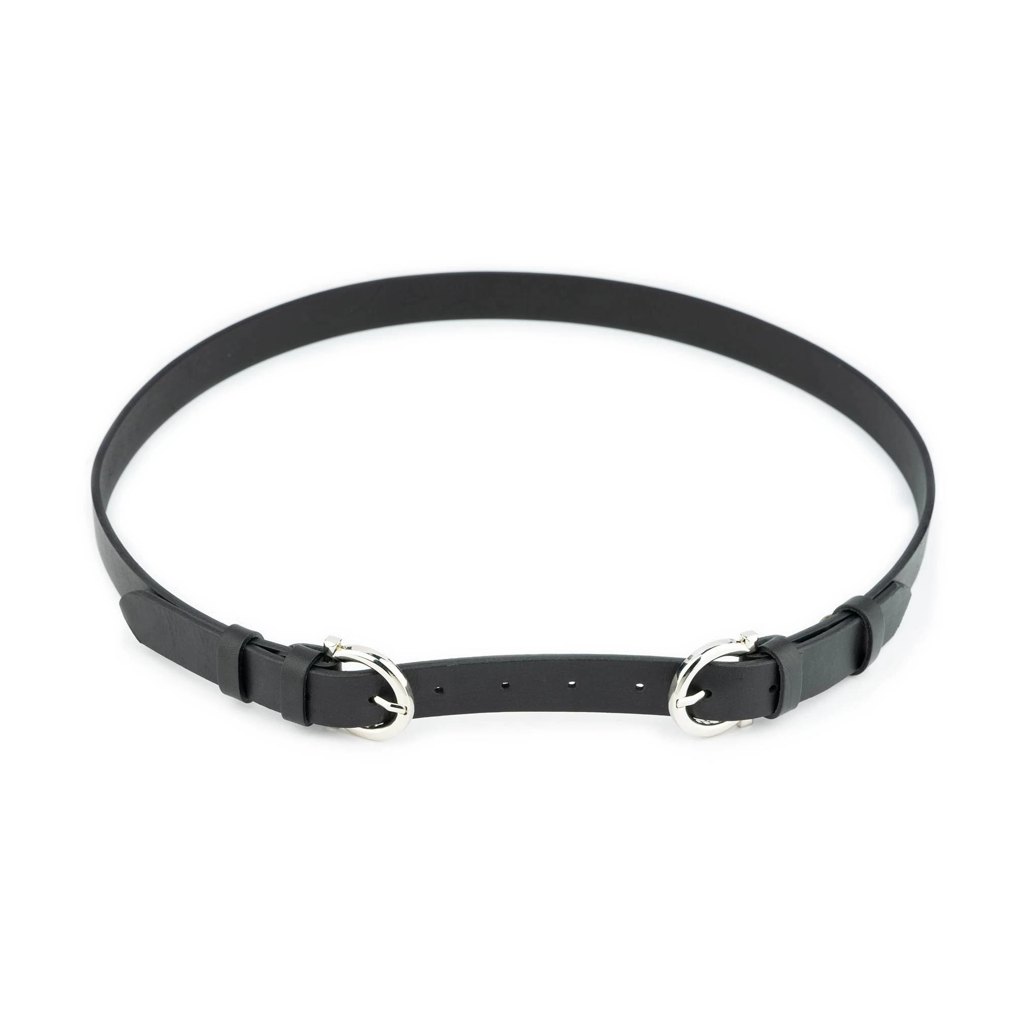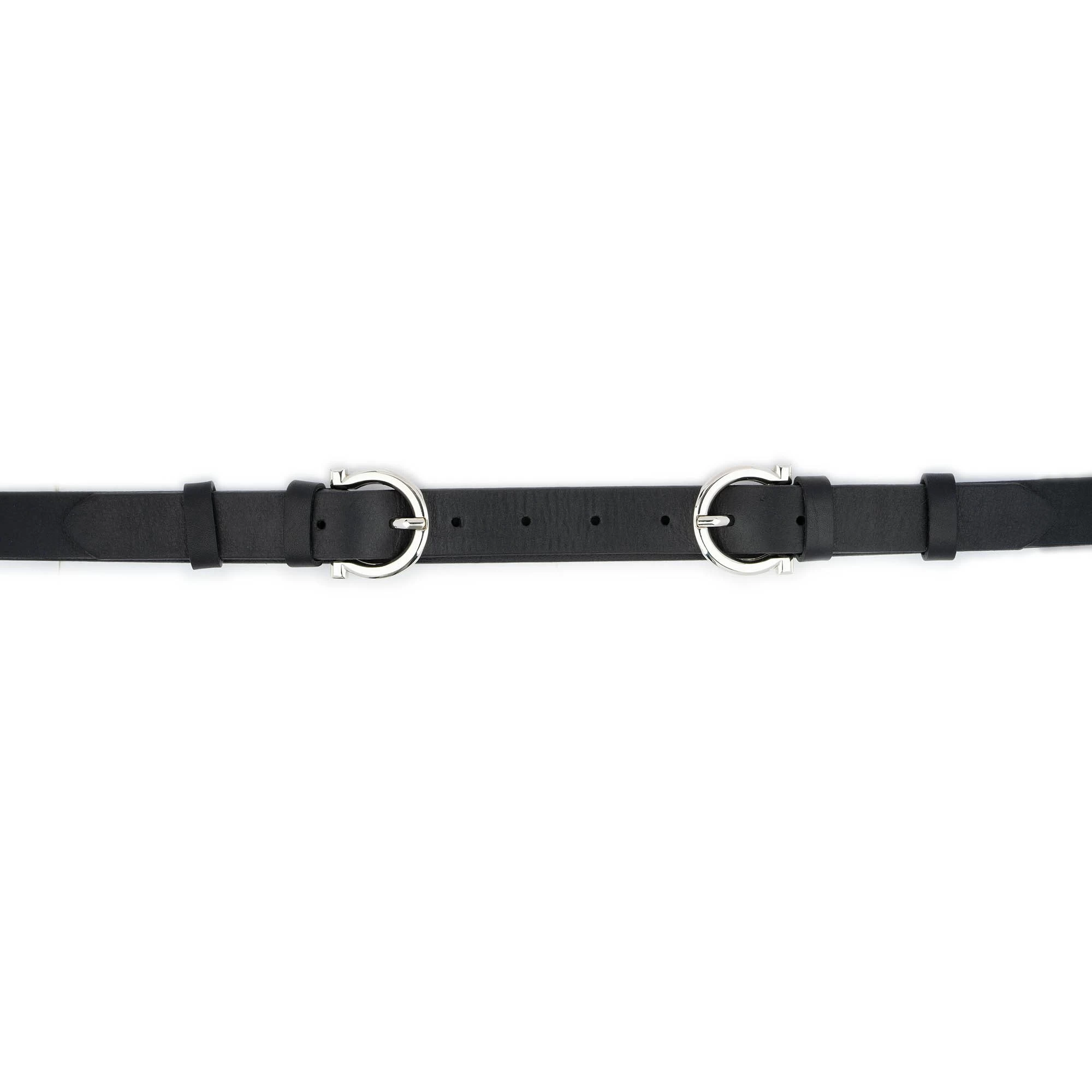 Buy Black Double Buckle Belt Womens With Silver Buckles at LeatherBeltsOnline.com