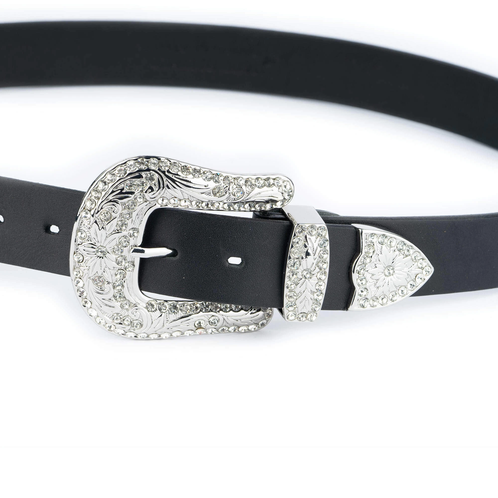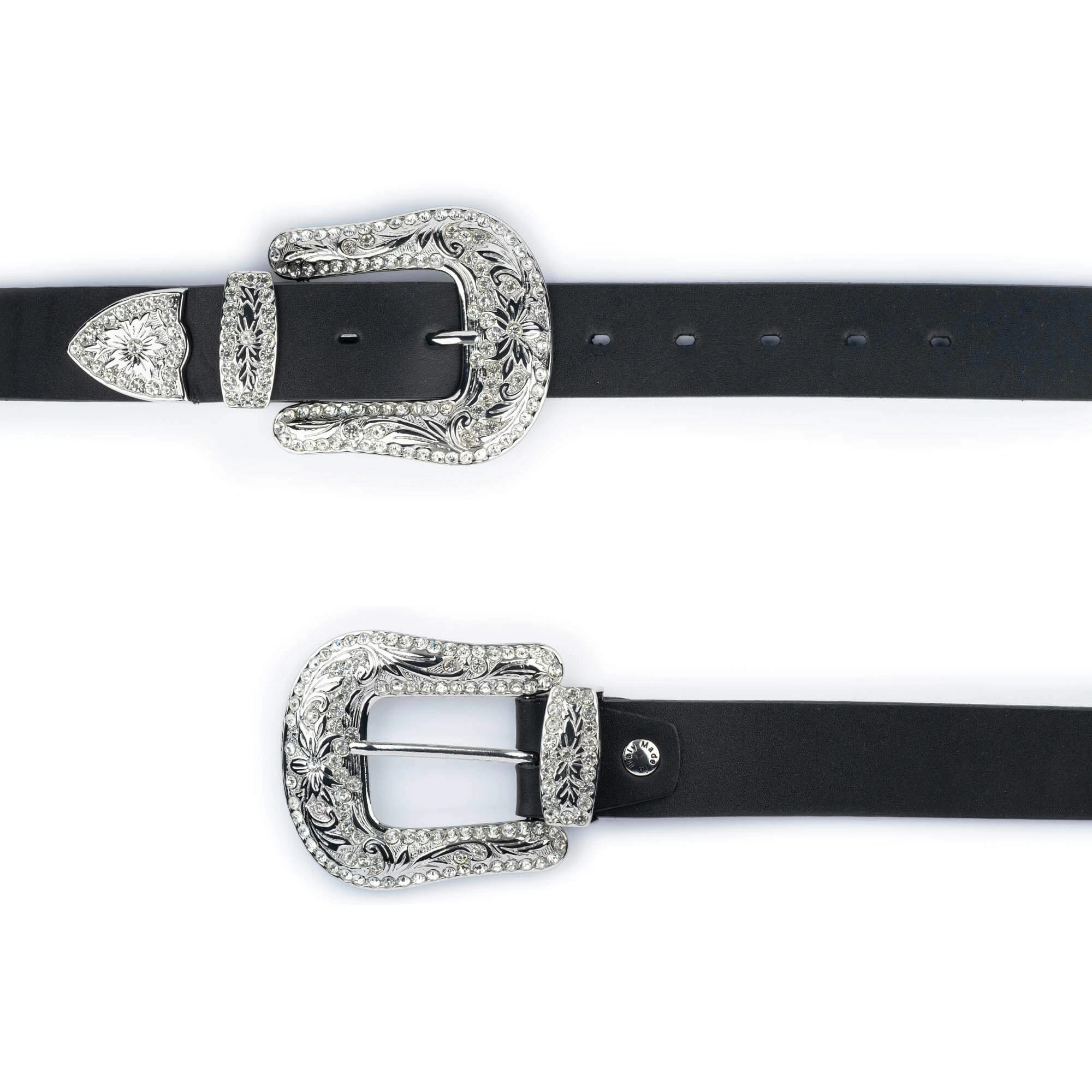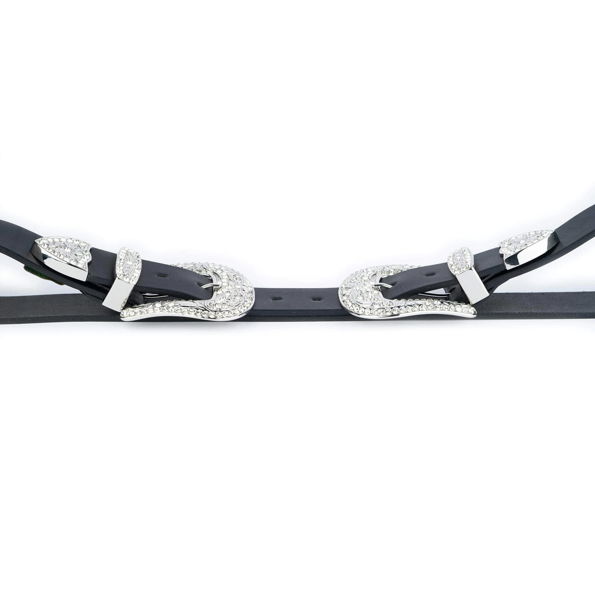 Buy Black Double Buckle Western Belt | Rhinestone Buckle at LeatherBeltsOnline.com