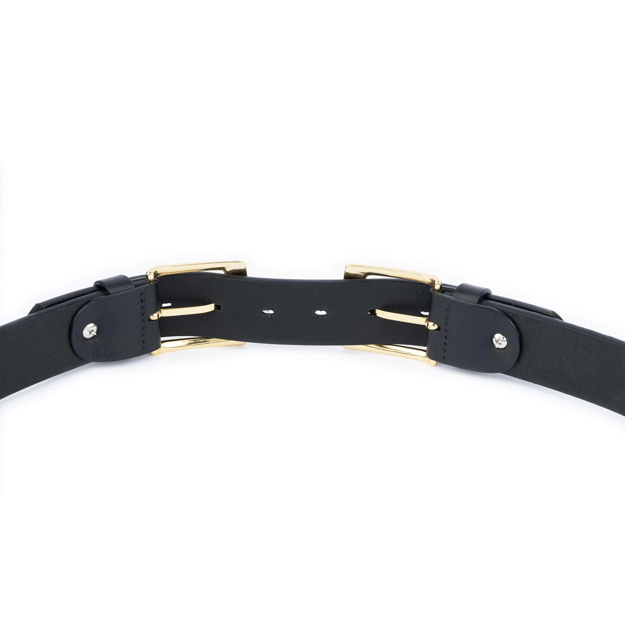 Buy Black Double Gold Buckle Belt | Full Grain Leather 3.5 Cm at LeatherBeltsOnline.com