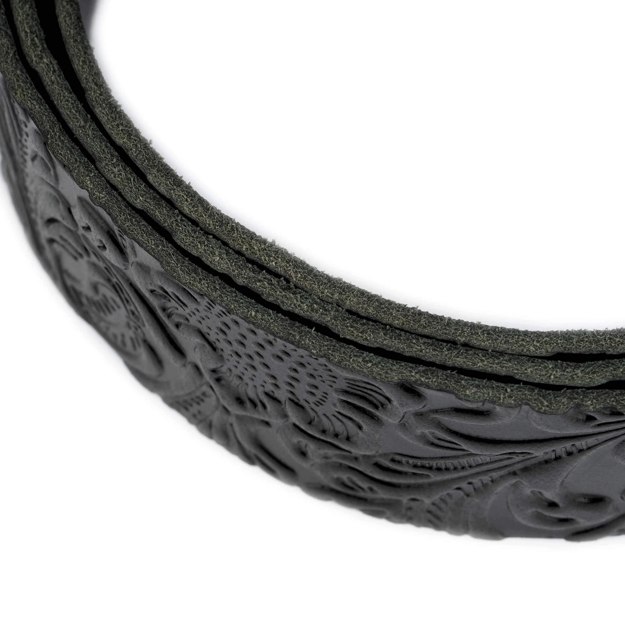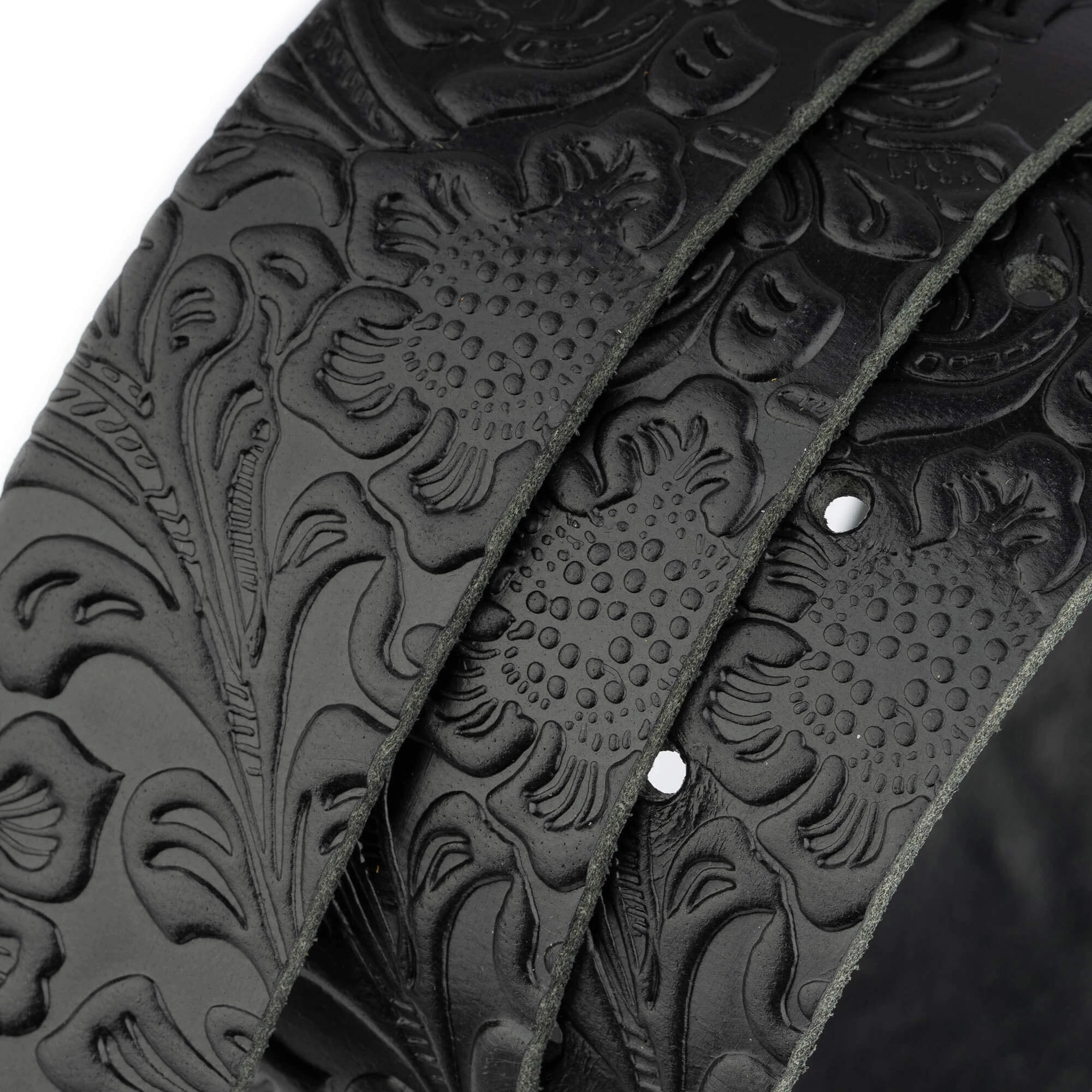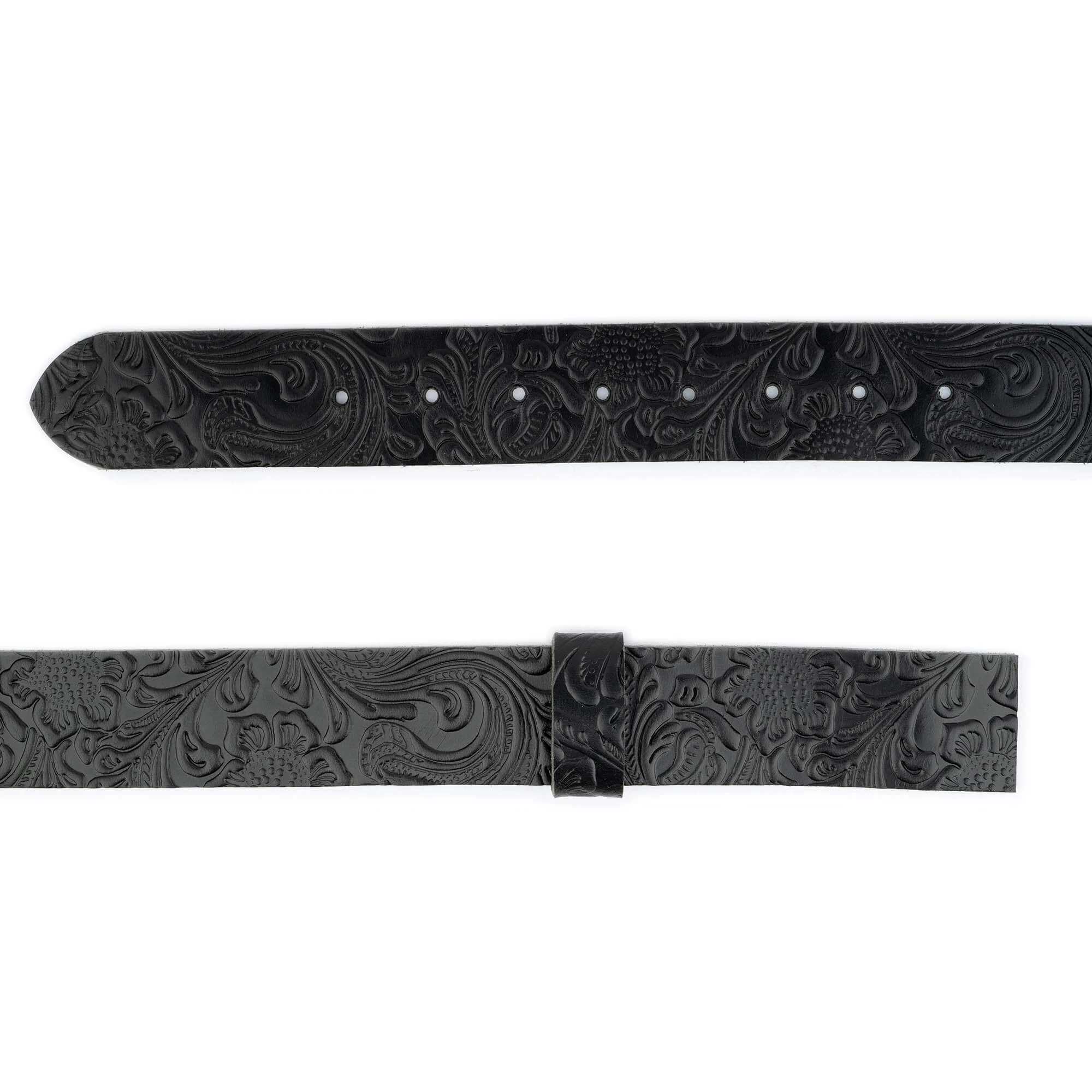 Buy Black Floral Tooled Leather Belt Strap Replacement 4.0 Cm at LeatherBeltsOnline.com