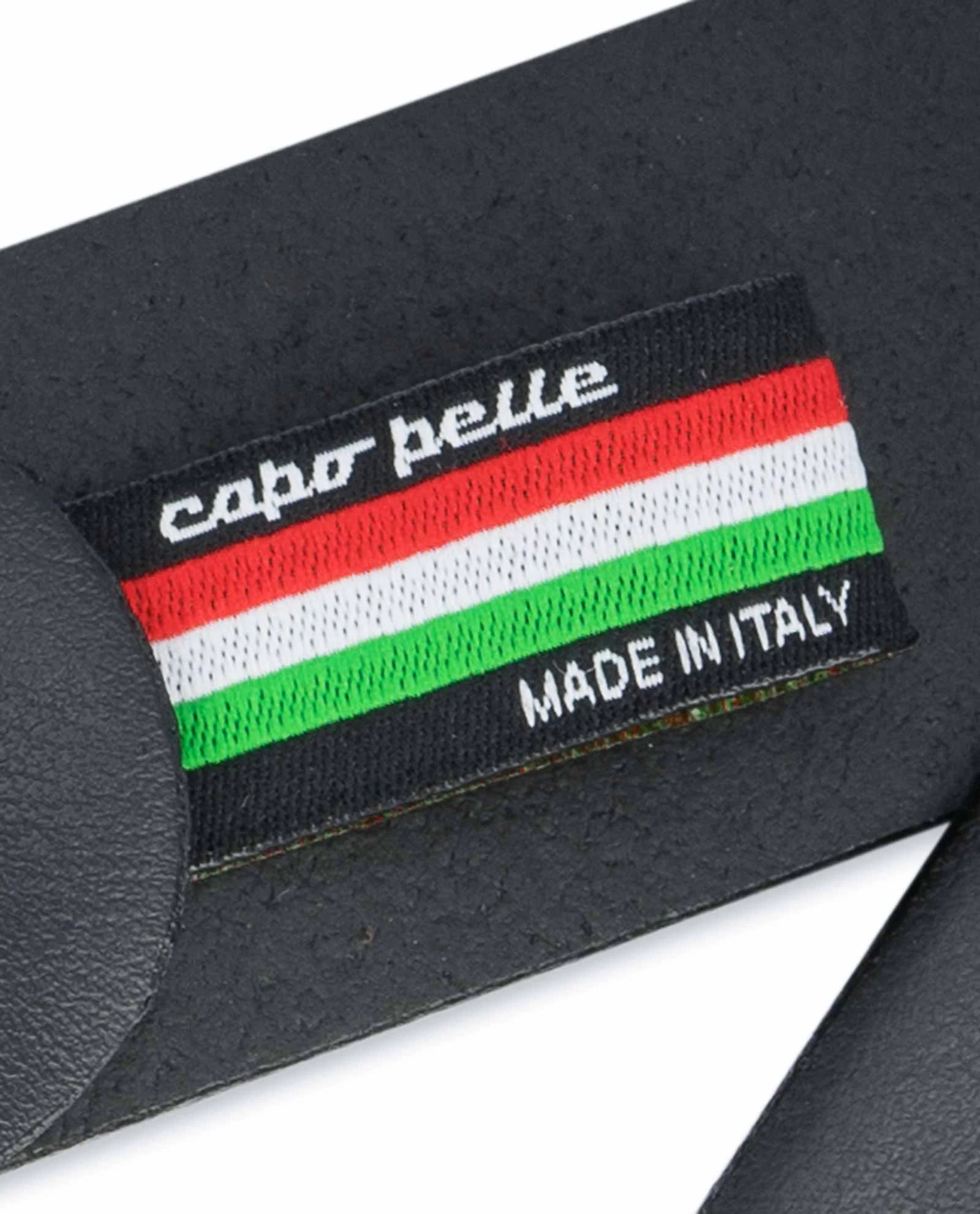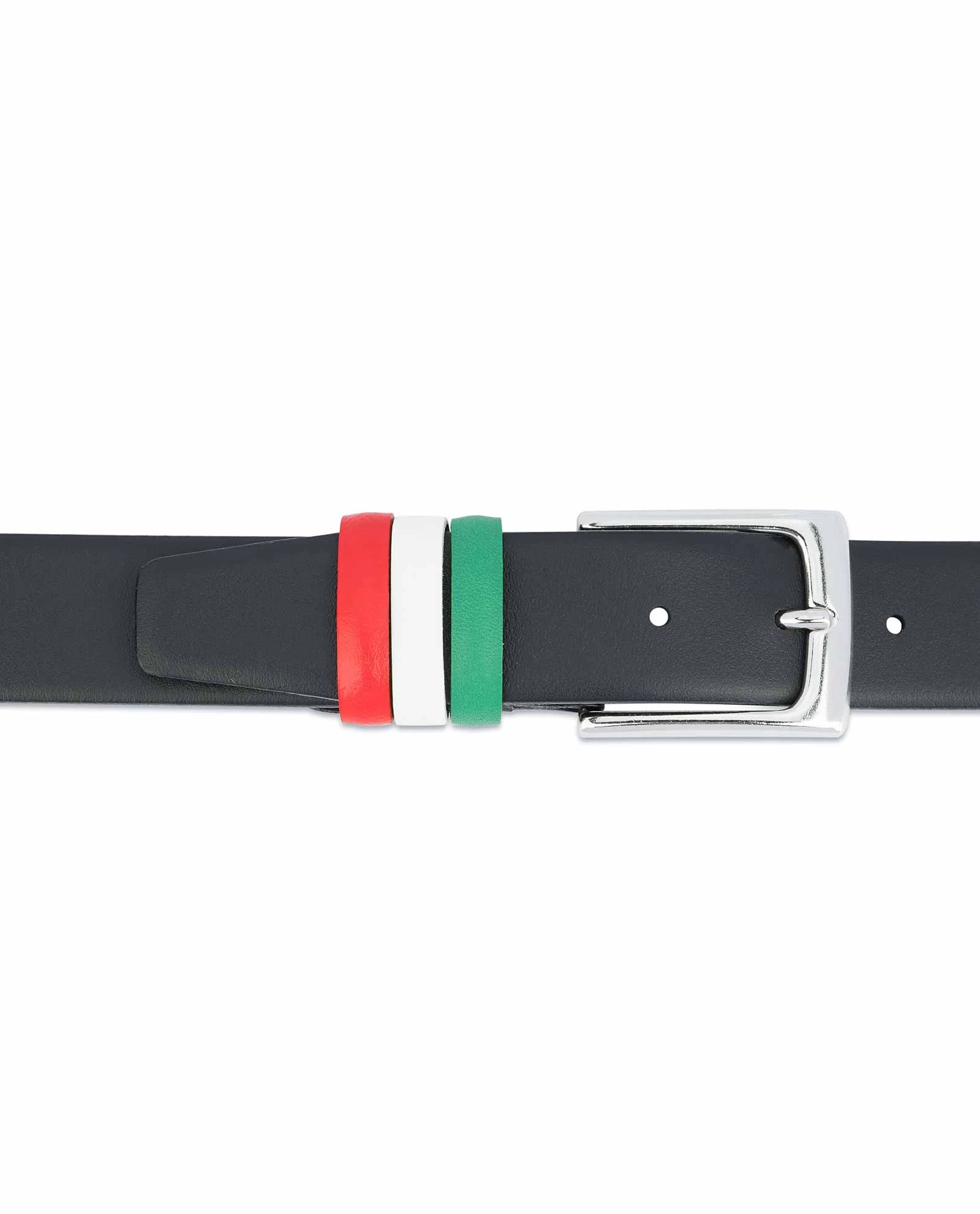 Black leather belt with Italy flag colors is the trendy accessory produced by the Italian brand Capo Pelle. This men’s leather belt is made of smooth genuine Italian leather and is 1 3/8″ (3.5 cm) wide.