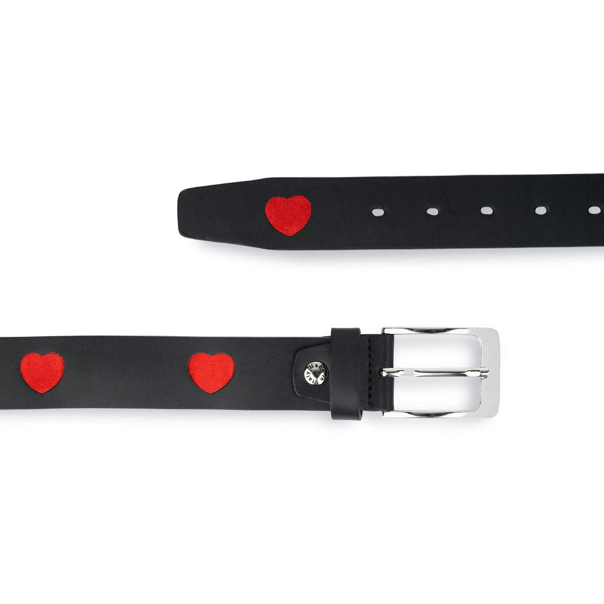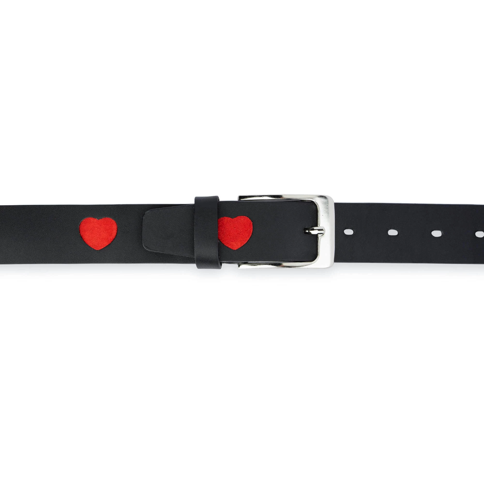 – Black color belt with red suede hearts