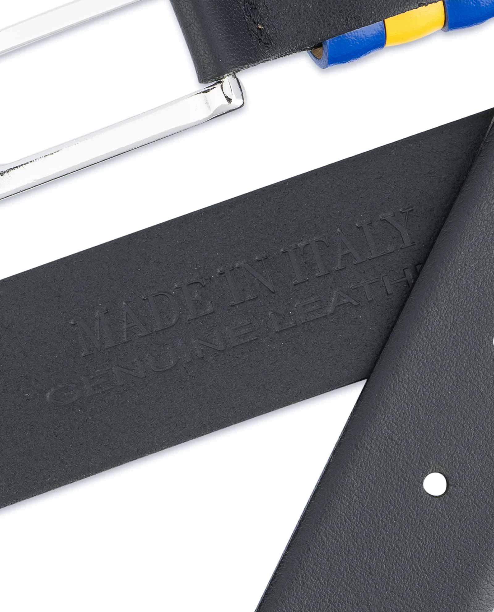 This black leather belt with Swedish flag colors is a choice for stylish men that keep themselves up to date with the latest trends and are not afraid to declare their cultural preferences!