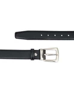 Such an accessory is usually made of coarse smooth leather and 1 3/8β³ | 3.5 ΡΠΌ widths. The buckle of such a belt can be made in any type and design. The genuine leather belt itself can also be decorated with stitches and rivets. As you see, this model meets all the above production standards. One leather loop, some pre-cut holes for the buckle tongue, and a buckle are used to adjust the belt to a comfortable position. This black menβs belt perfectly matches with a silver buckle in western style. The canvas is stitched with black threads for better durability. Our online store offers a wide range of menβs belts for jeans.