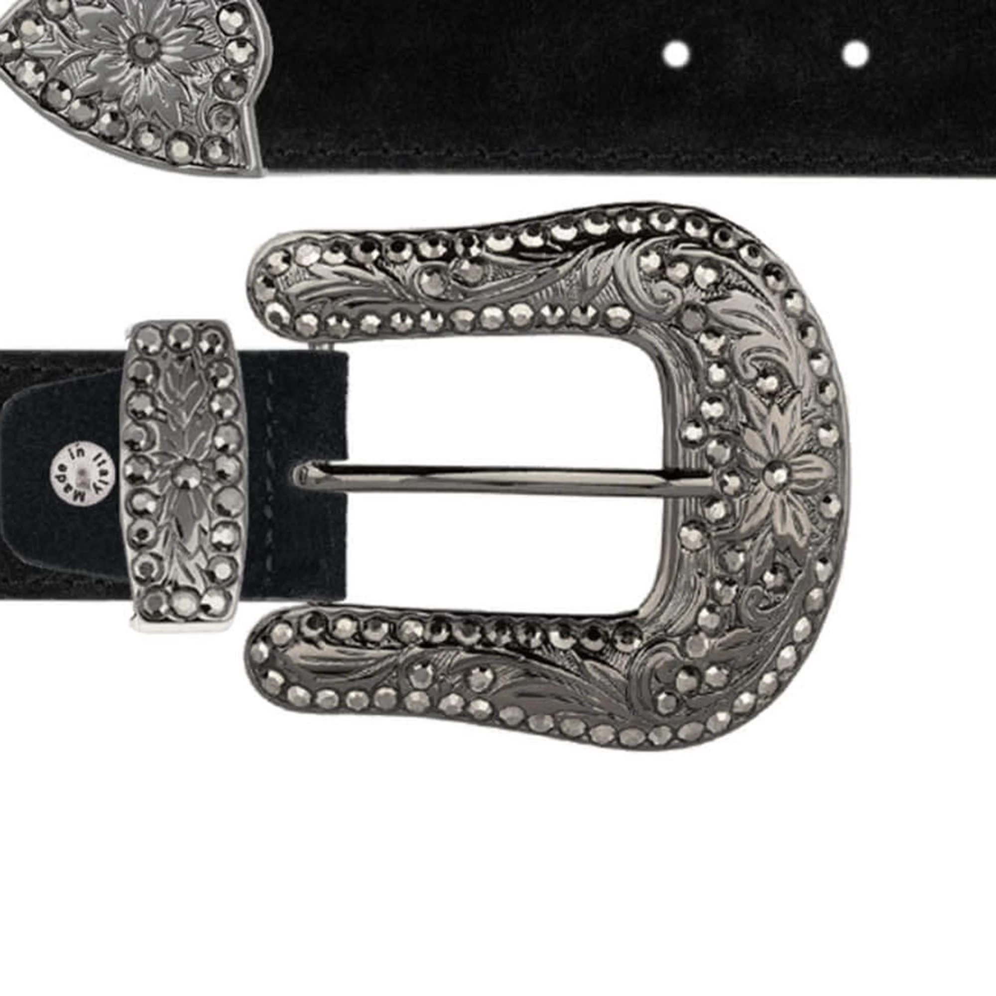 – Black silver color buckle with rhinestones