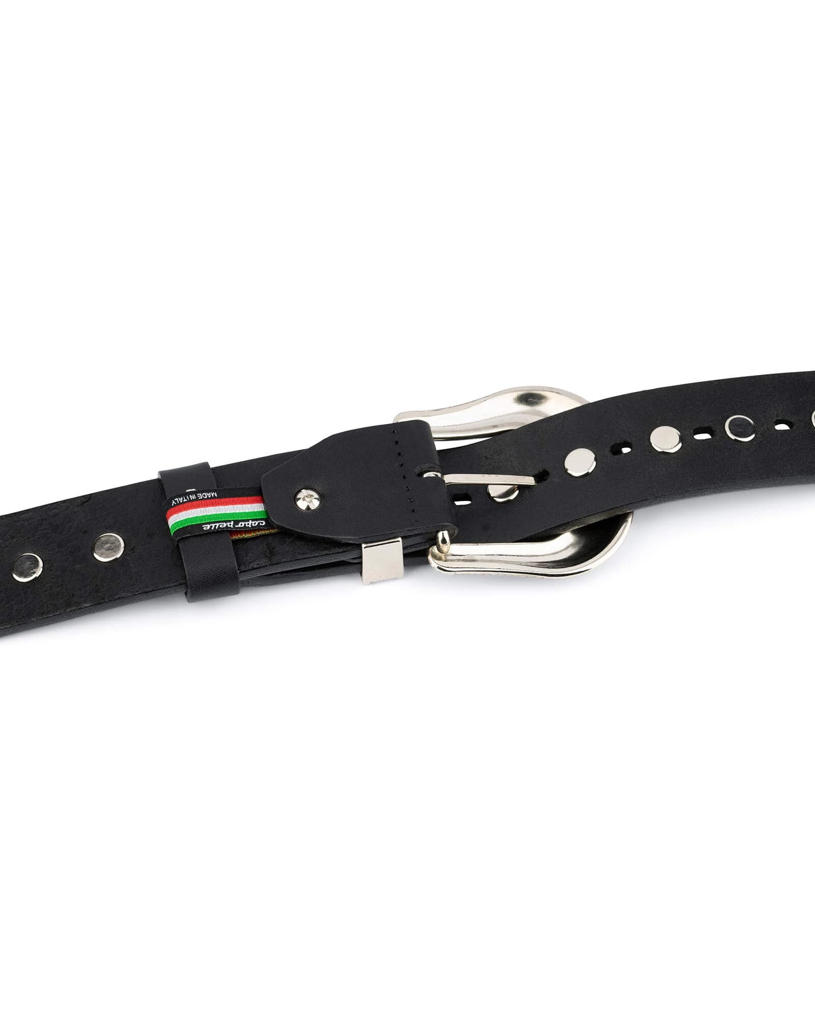 Check out our catalog and buy everything you need. The Capo Pelle brand offers this black studded belt together with a black dust bag, a belt authenticity card, and a paper tag in the kit. Well, you have a great opportunity to make a gift for your brother, friend, or co-worker by ordering this classy men’s belt at LeatherBeltsOnline.com. Rest assured of the quality of this leather accessory: it is made in accordance with the European standards of manufacturing have set and is available with a quality tag.