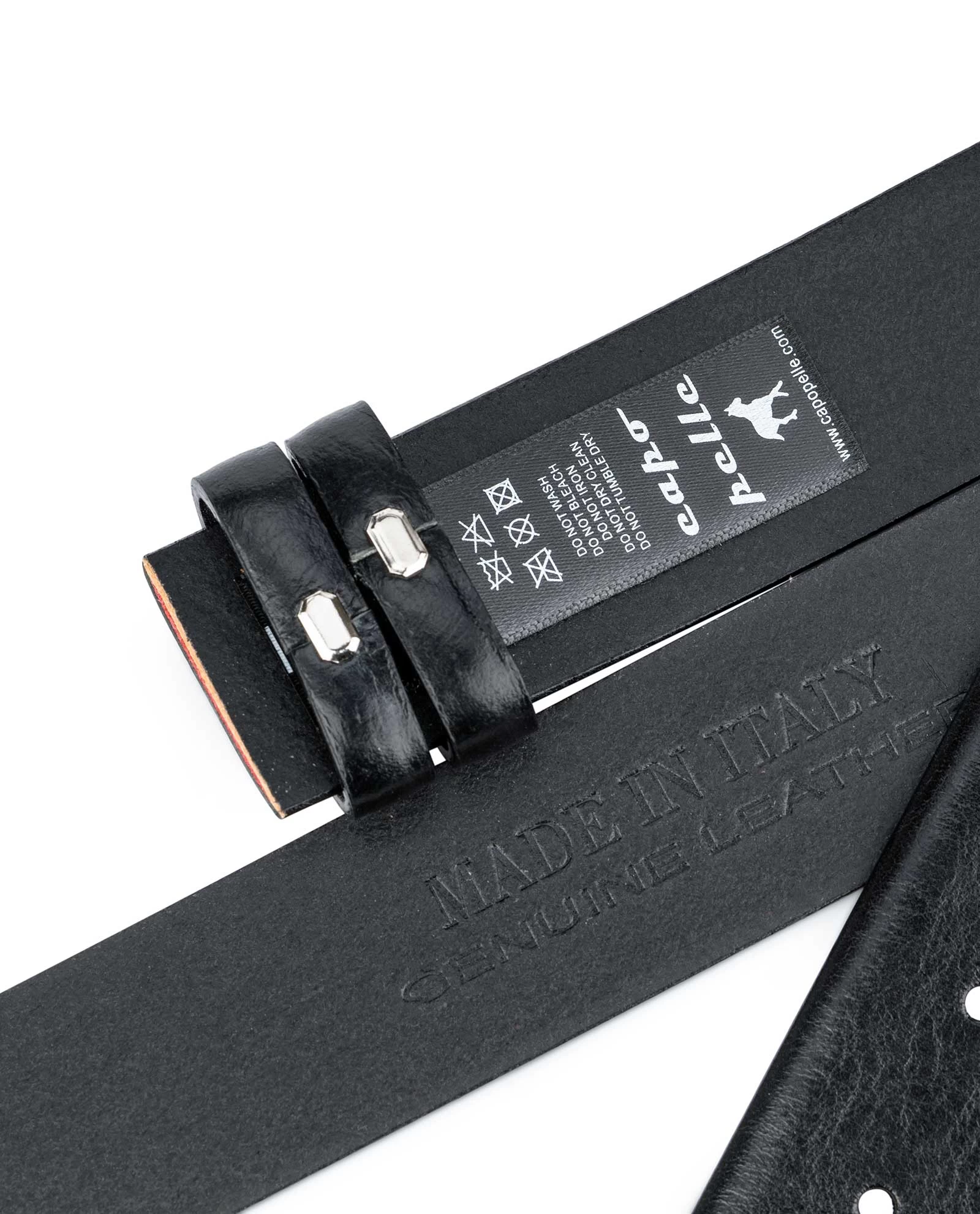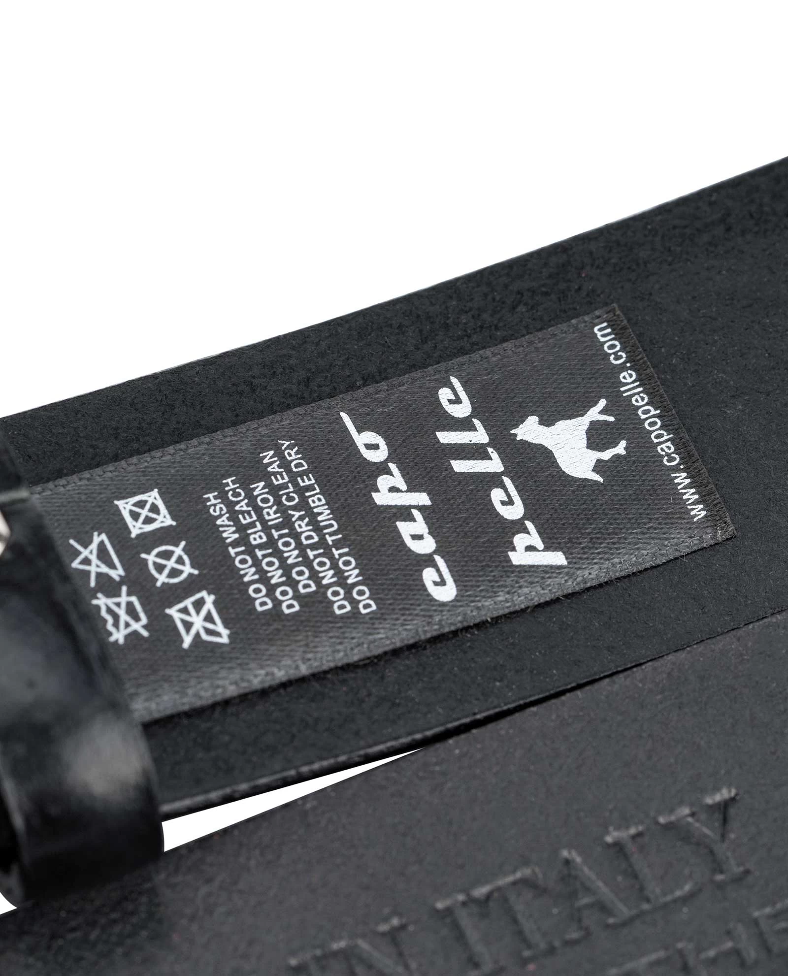 Black vegetable-tanned leather belt strap presented by Capo Pelle brand has a classic minimalistic tone. This belt strap has 1 3/8 (35 mm) height. The model comes without a buckle, this enables you to choose any of matching belt buckles that are offered on our website to gain that unique look that will really set you apart.