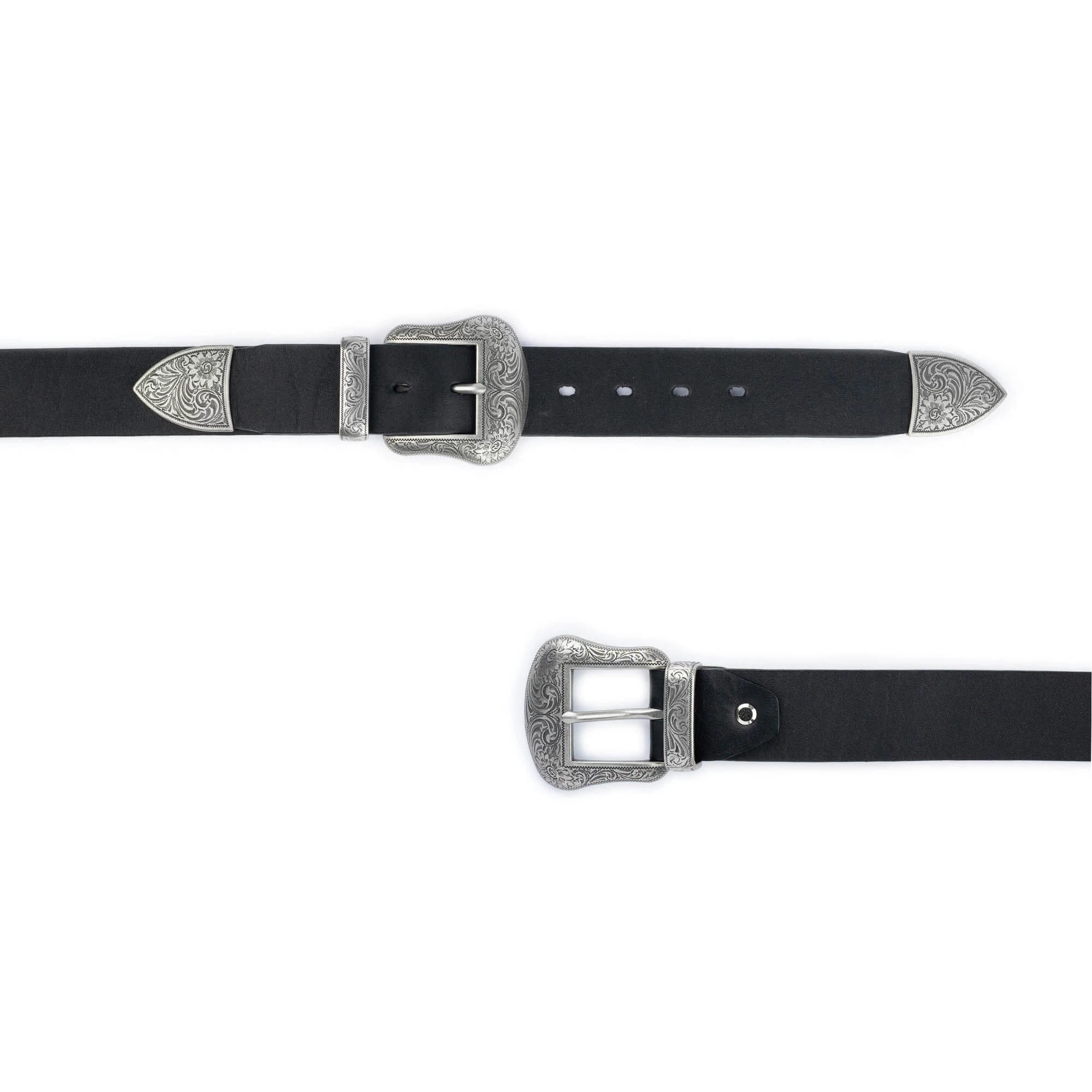 Buy Black Western Double Buckle Belt 1.5 Inch Wide at LeatherBeltsOnline.com