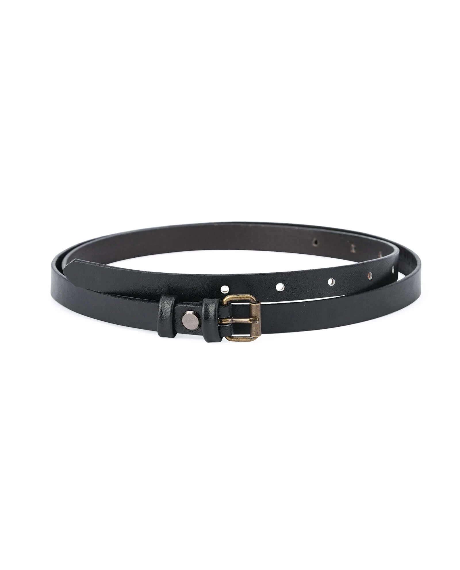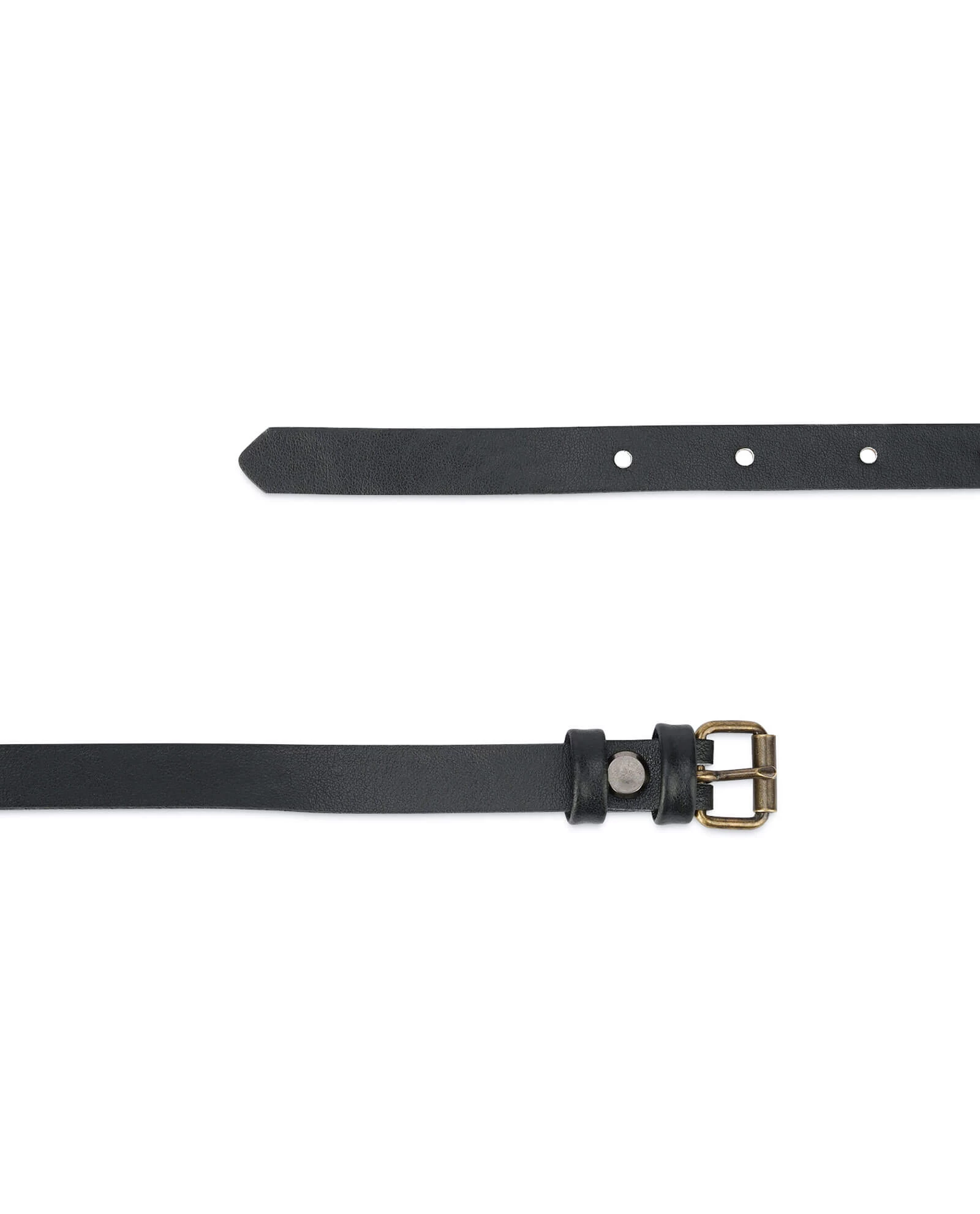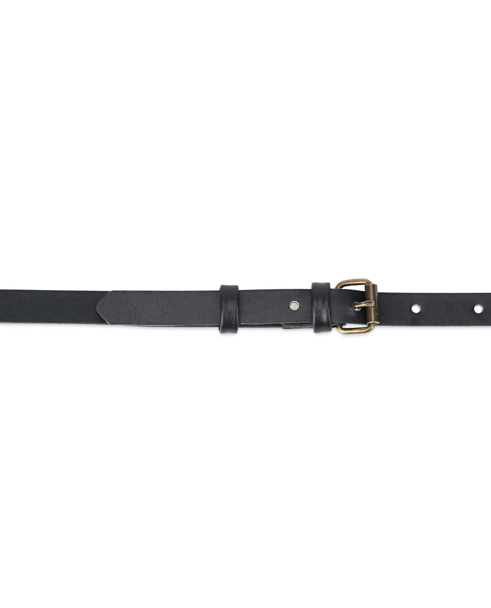 This accessory is able to accentuate the female waist neatly. Knitted oversize jumper dresses also go well with this elegant belt. The black women’s belt with a bronze roller buckle offered by LeatherBeltsOnline.com