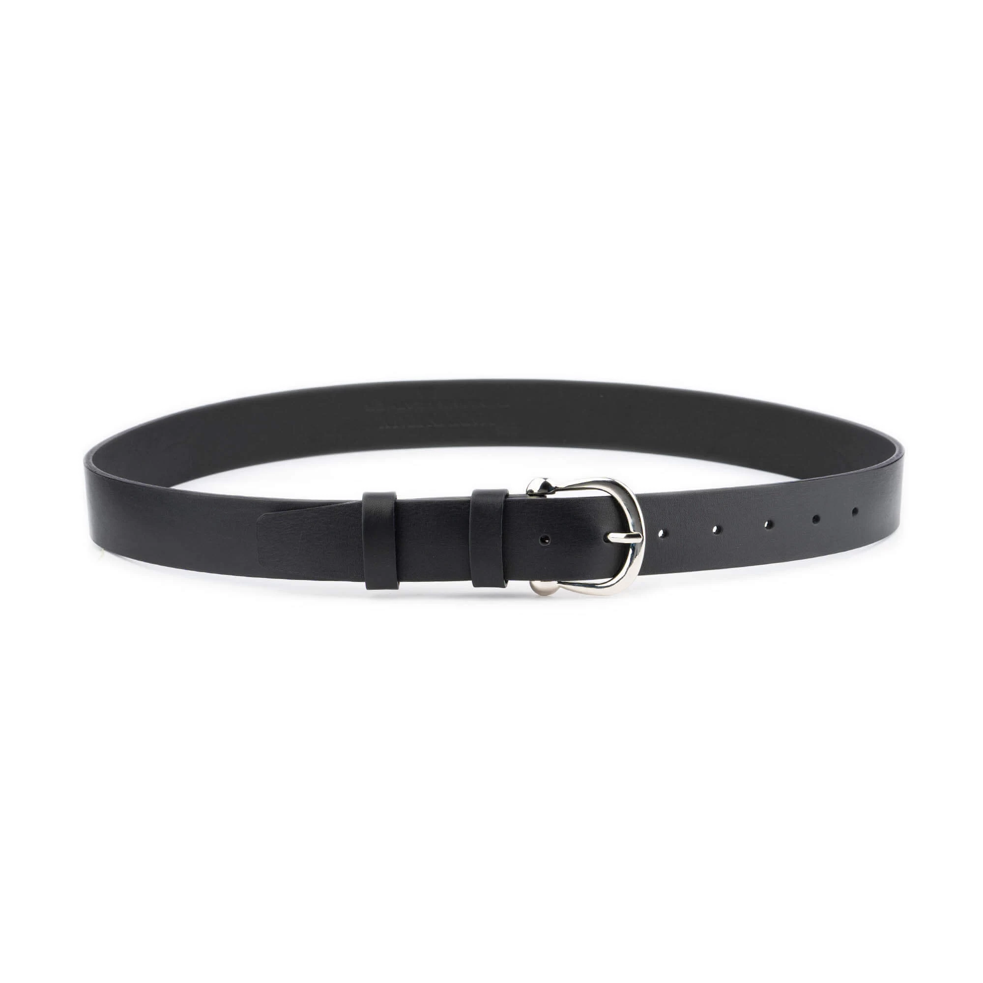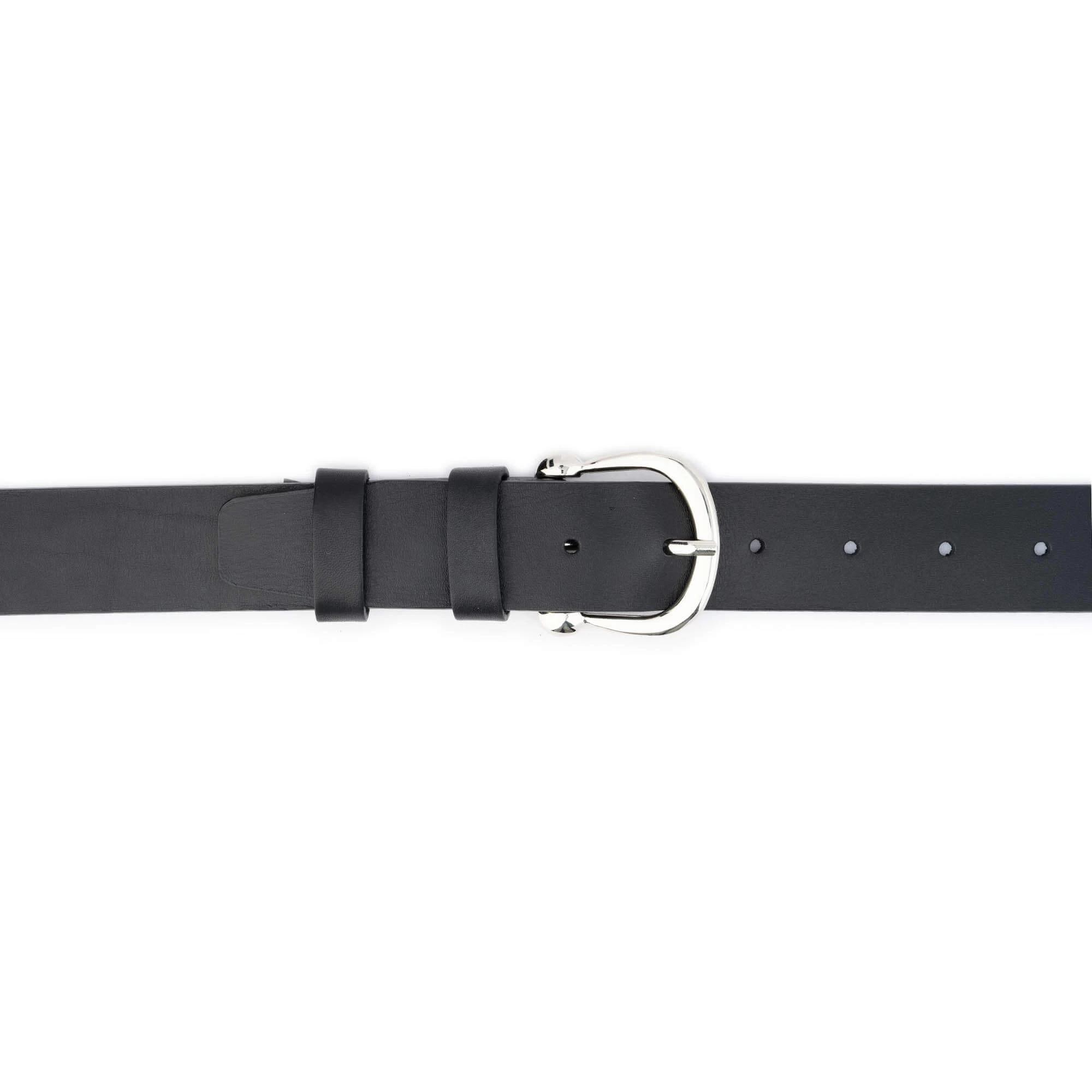 Buy Black Womens Leather Belt With Large Horseshoe Buckle at LeatherBeltsOnline.com