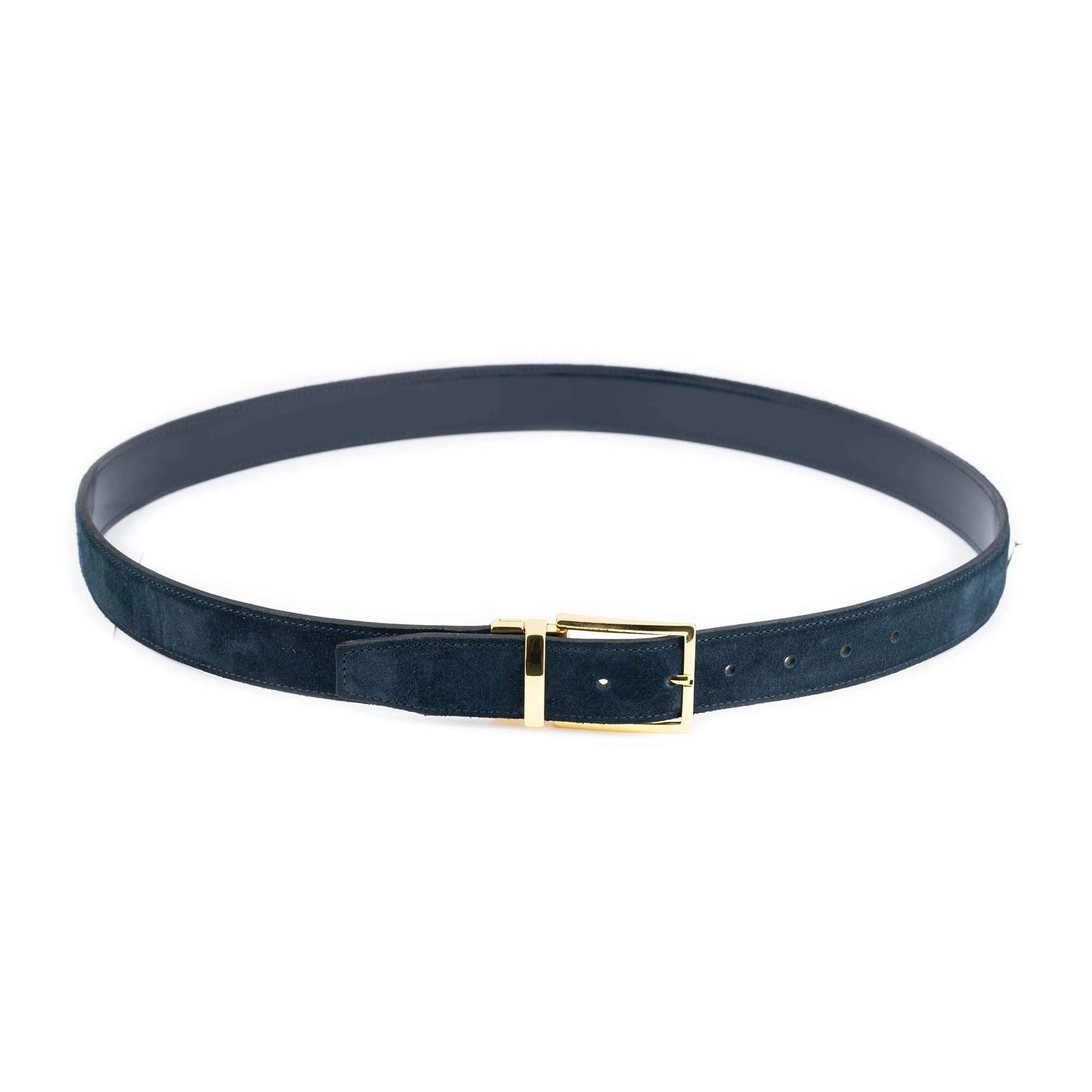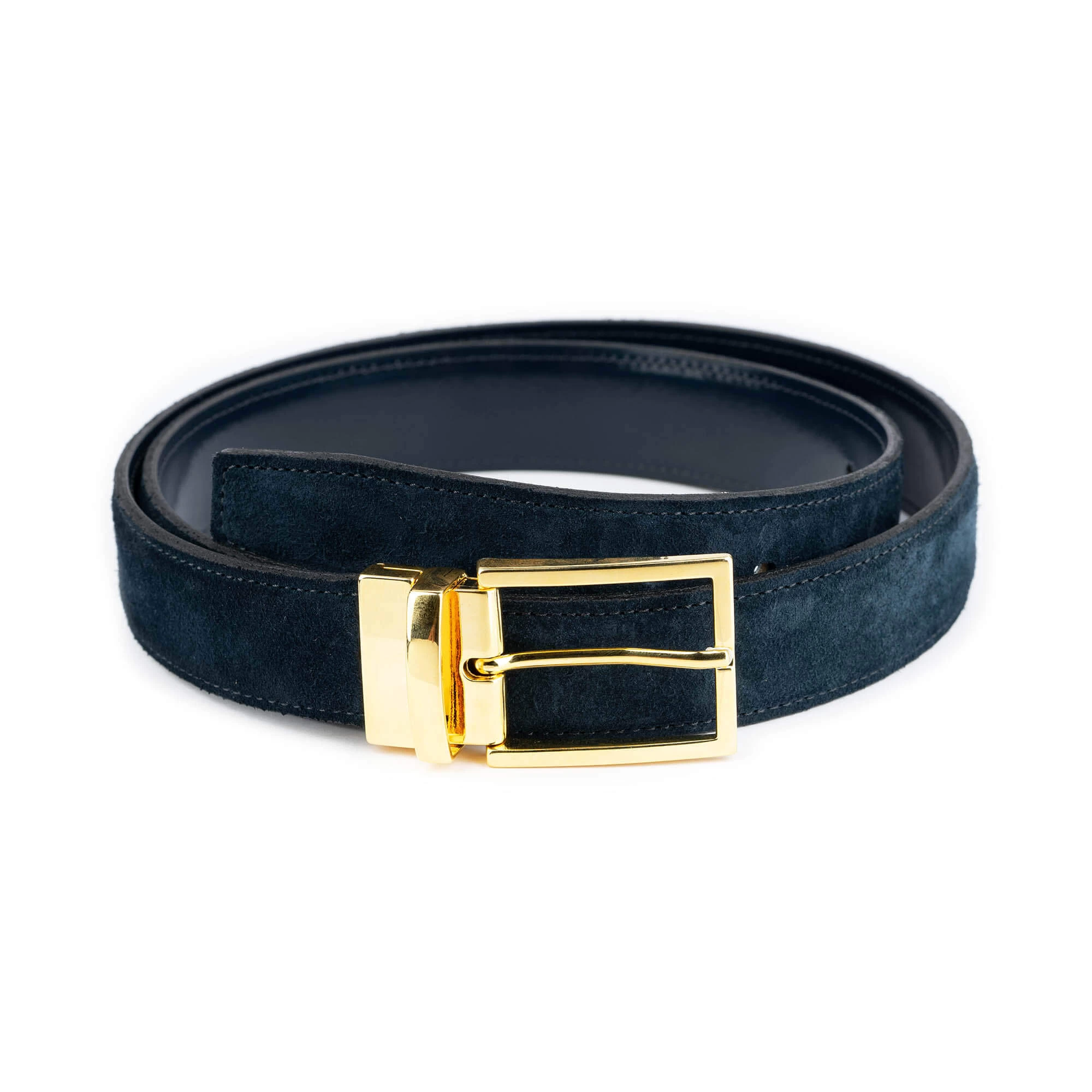 Buy Blue Reversible Mens Belt With Gold Buckle at LeatherBeltsOnline.com