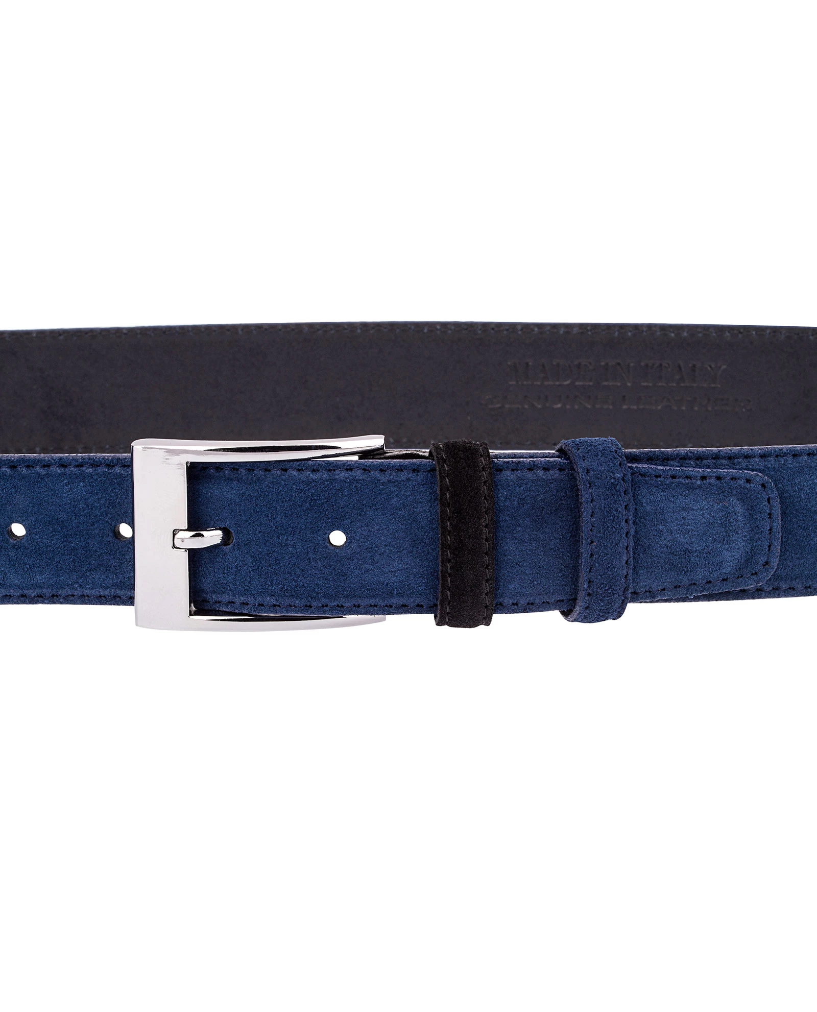 S is for Suede, S is for Smooth. That’s exactly how this blue suede belt feels. The texture of the leather is simply too smooth to ignore. Perfect for both men’s and women’s attires, this casual belt by Capo Pelle perfects the blend of smooth suede handiwork and a strong silver belt buckle. The black leather finish underneath is equally smooth, so you won’t have to worry about ruining your pants or dress when you wear this. Cowskin belts have always been in trend, and with the navy blue hue that this belt has, get ready for an even trendier and complete look!