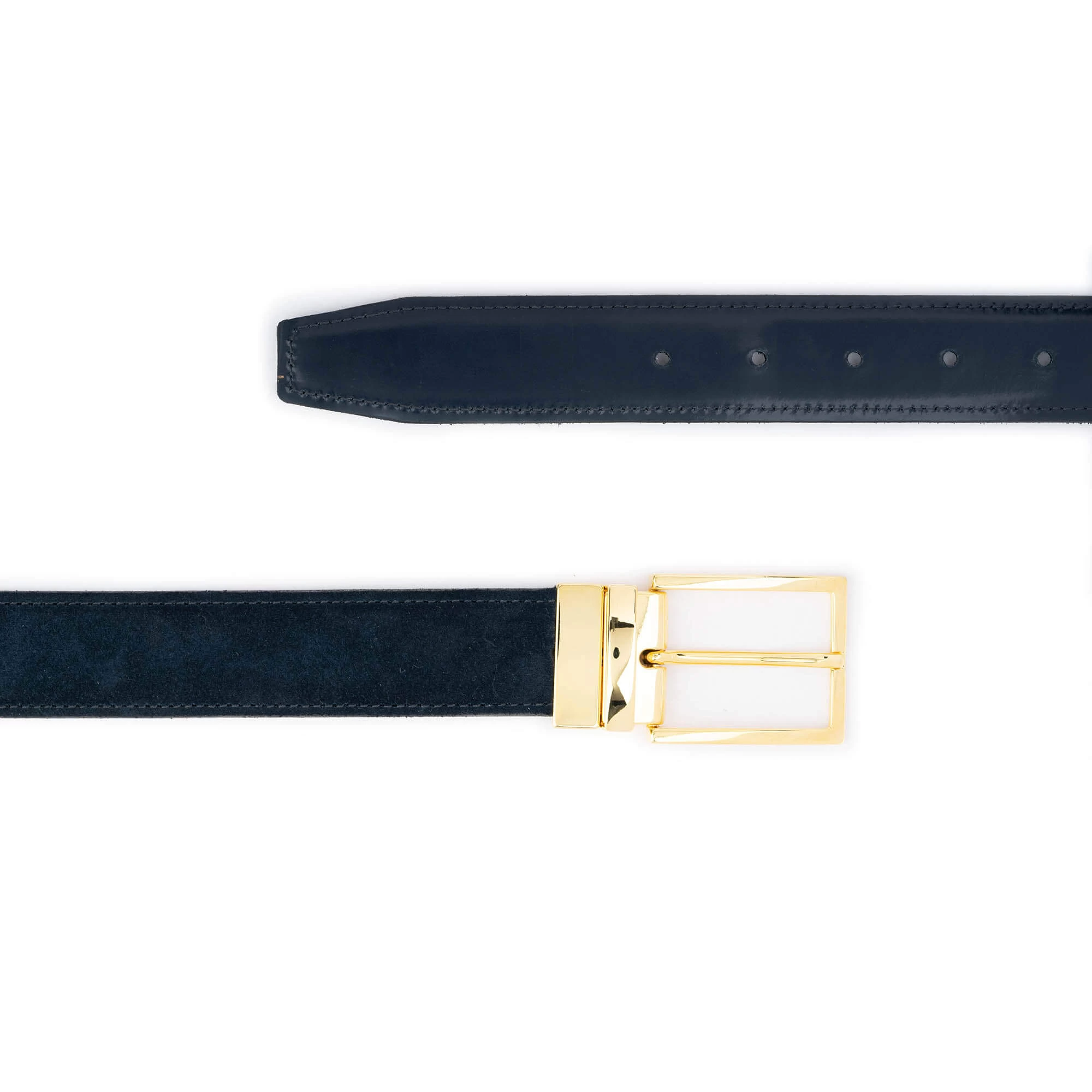 Buy Blue Suede Men’s Reversible Belt With Gold Buckle at LeatherBeltsOnline.com