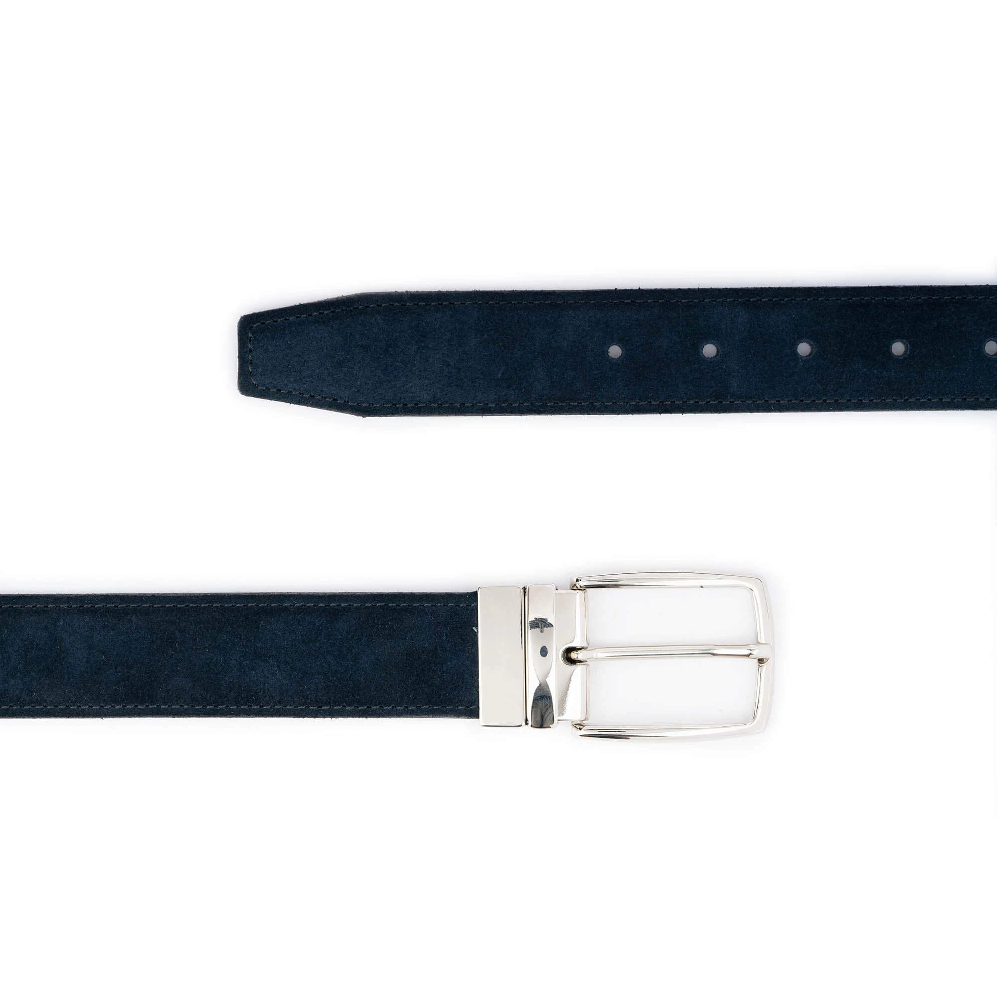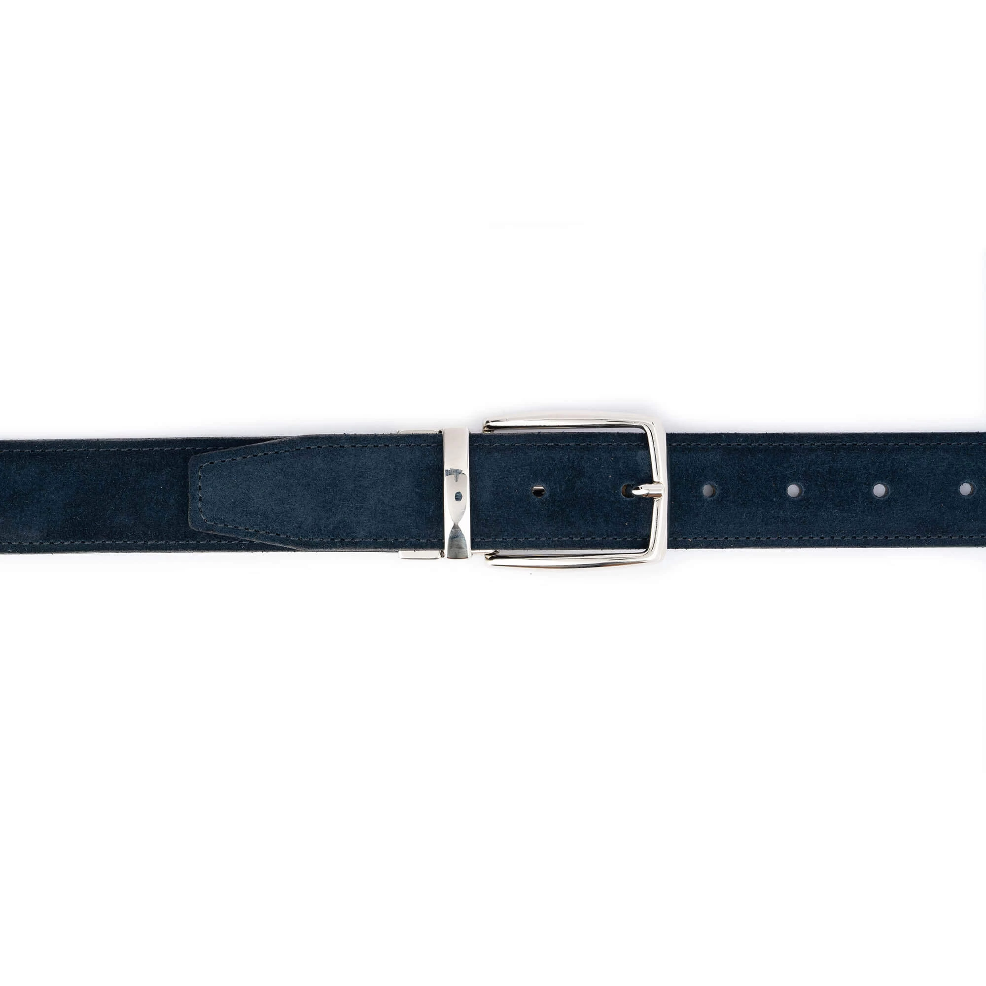 Buy Blue Suede Reversible Belt Mens With Silver Buckle at LeatherBeltsOnline.com