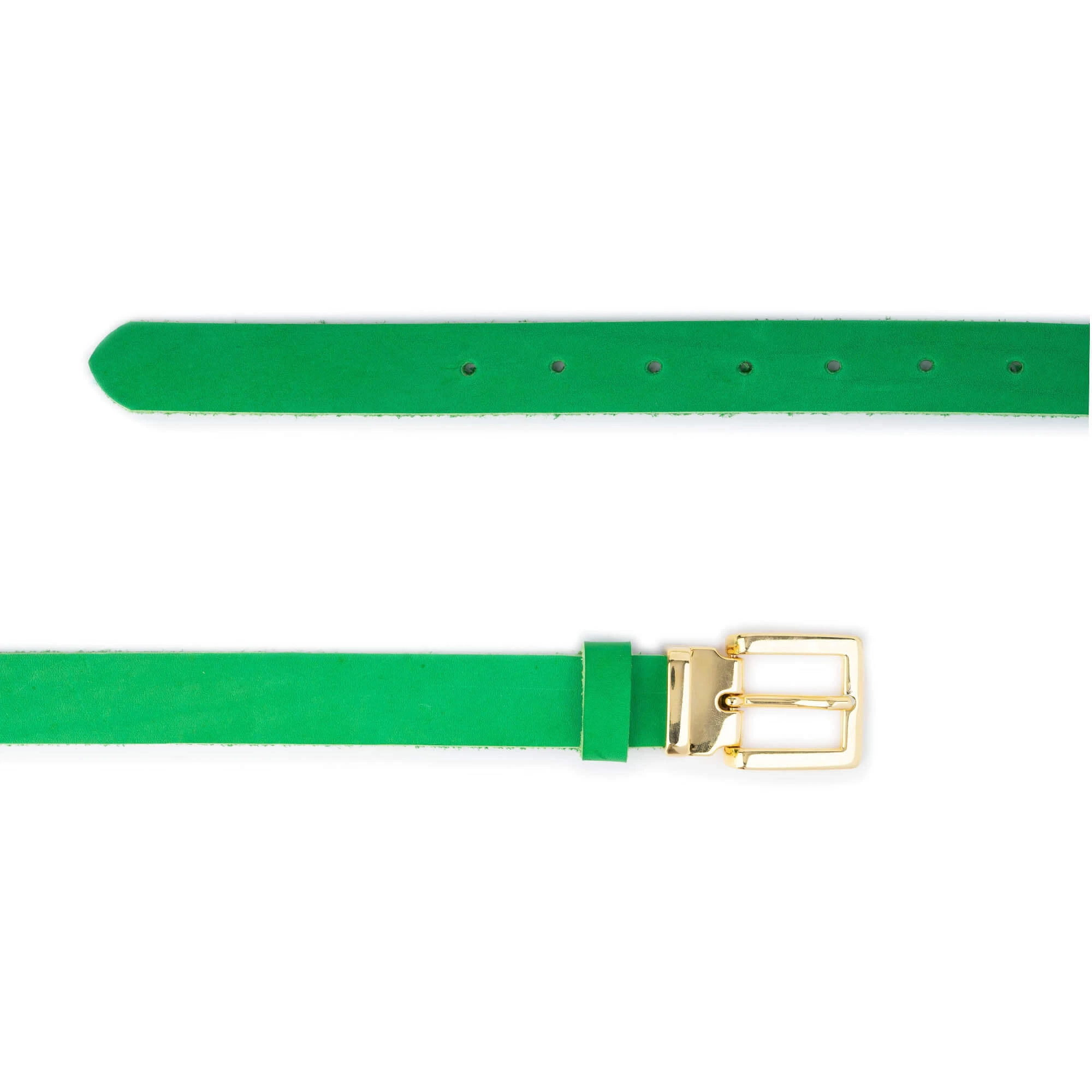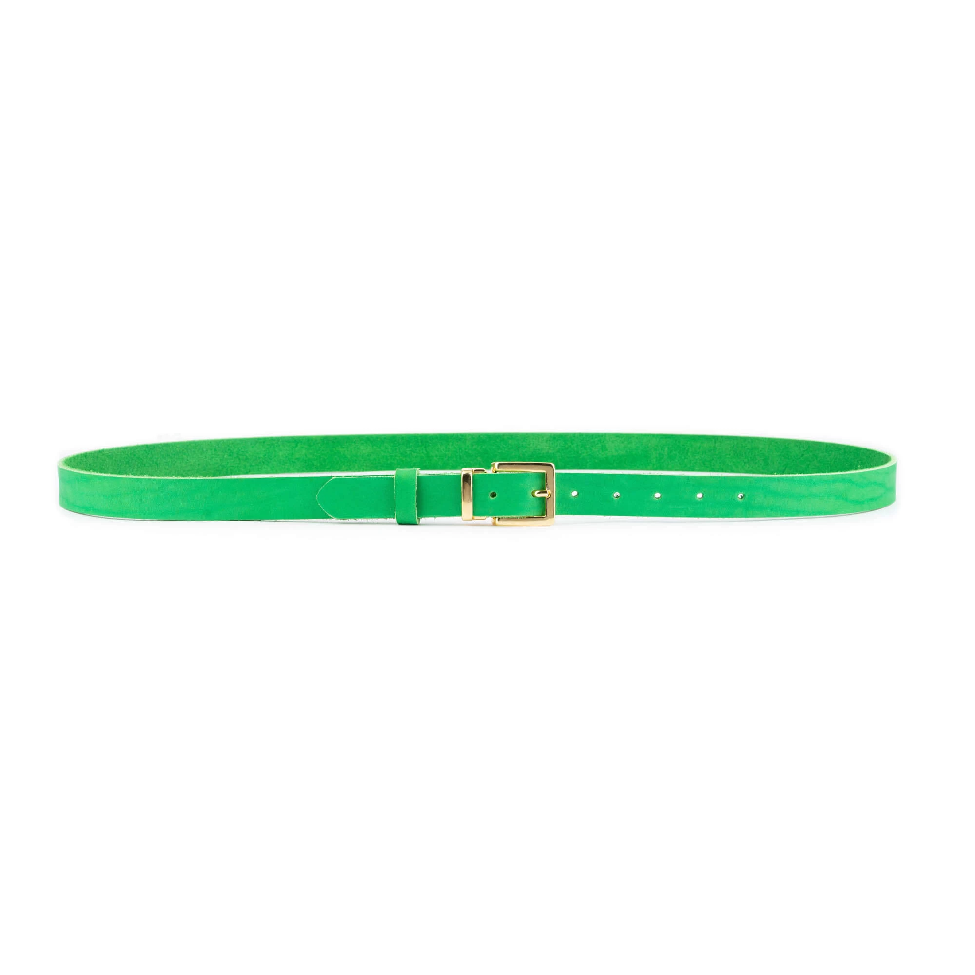 Buy Bright Green Leather Belt With Gold Buckle at LeatherBeltsOnline.com – 1.0″ (2.5 cm) wide – Green color – Genuine leather – Gold color buckle – Model code BRIGRE25GOLLDR