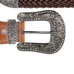 Buy Brown Braided Western Belt With Black Crystal Buckle at LeatherBeltsOnline.com