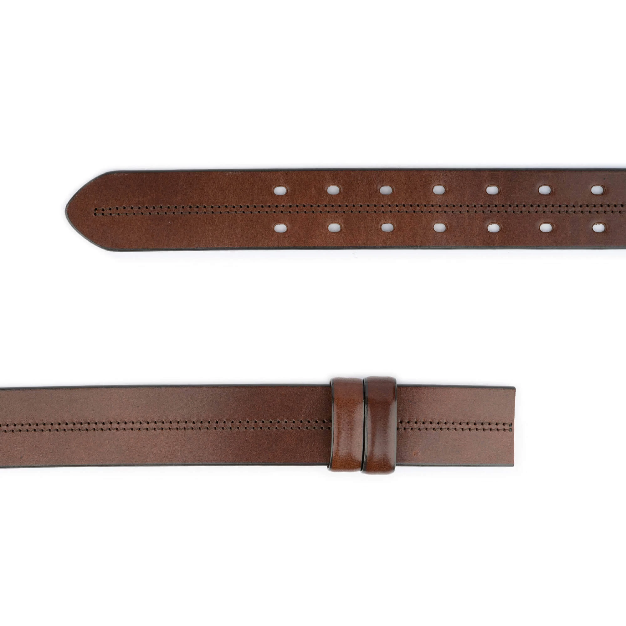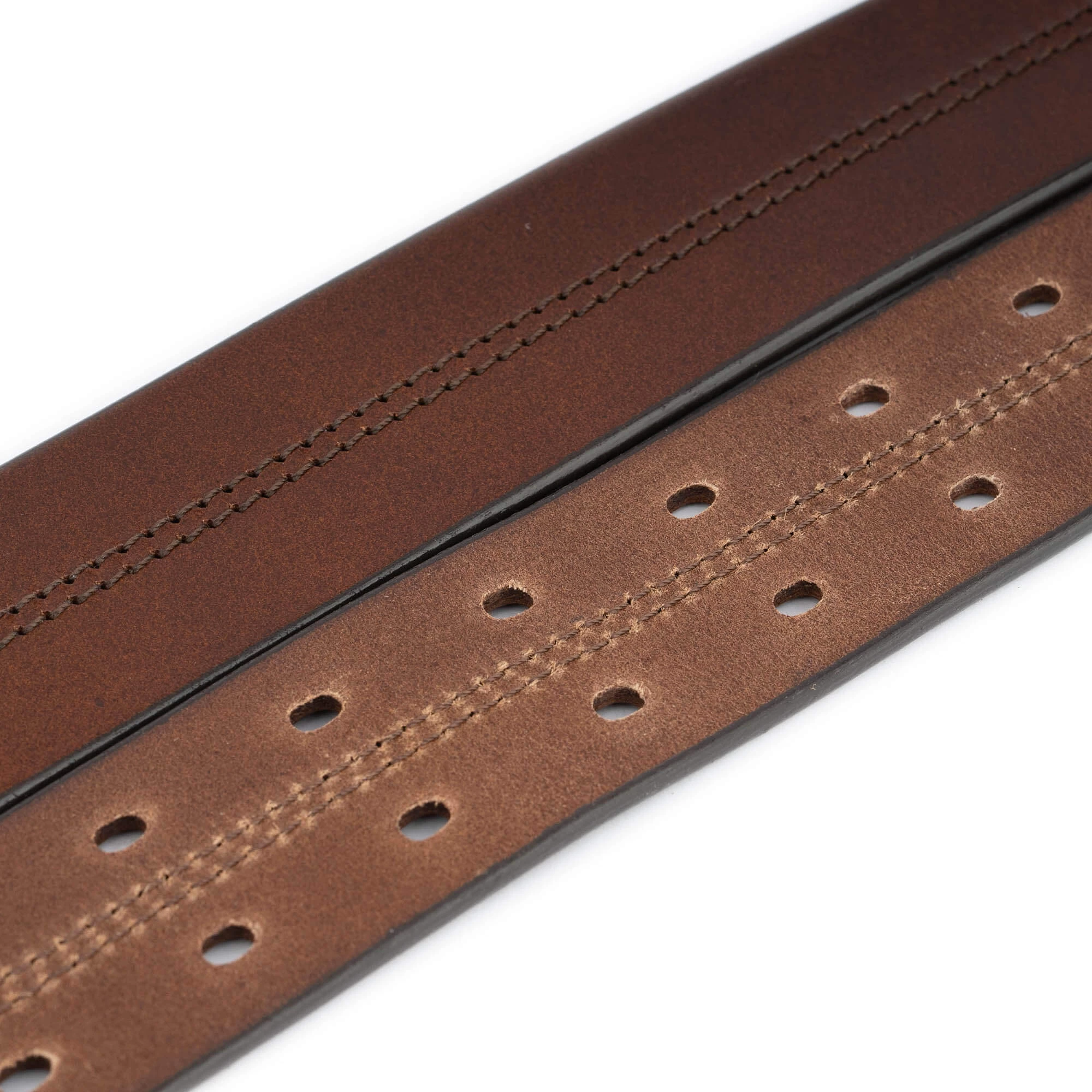 Buy Brown Double Hole Leather Strap For Two Prong Buckle at LeatherBeltsOnline.com – 1 1/2″ (4.0 cm) wide – Brown color – Genuine leather – No buckle – Model code DBLHOL40BROAML