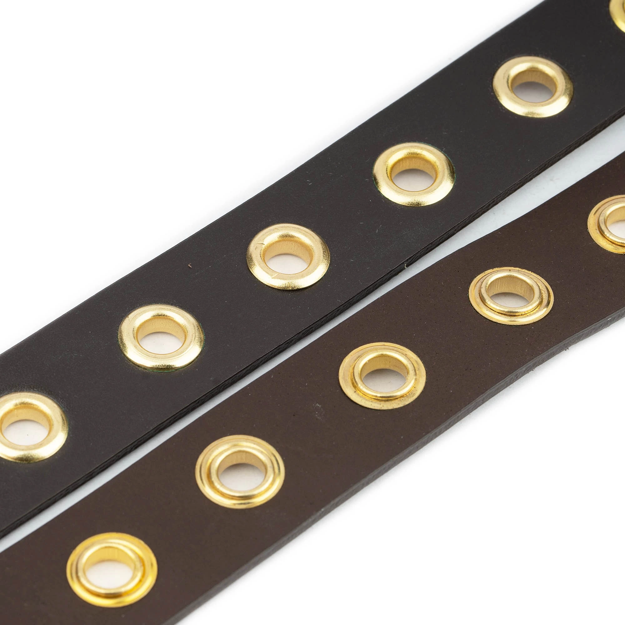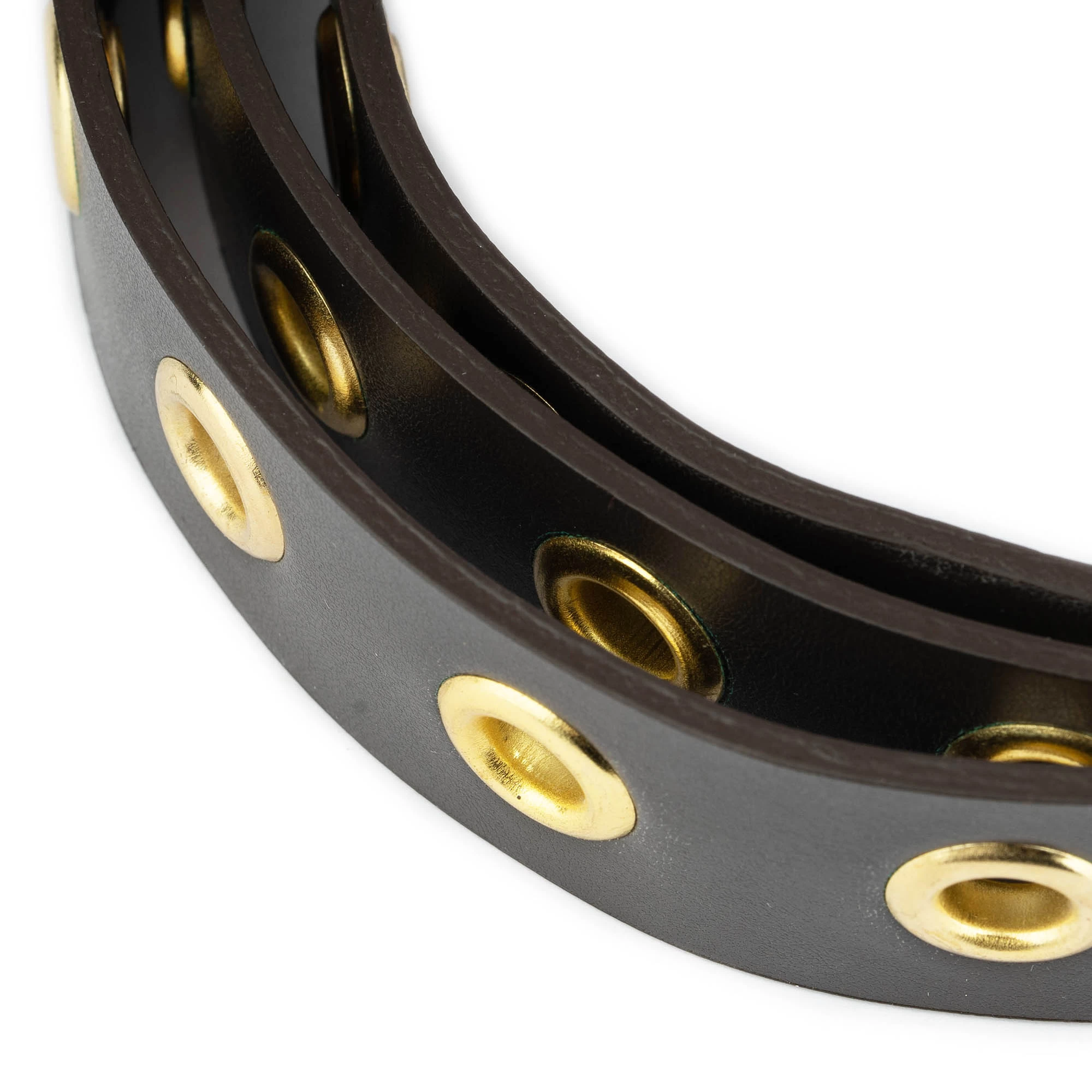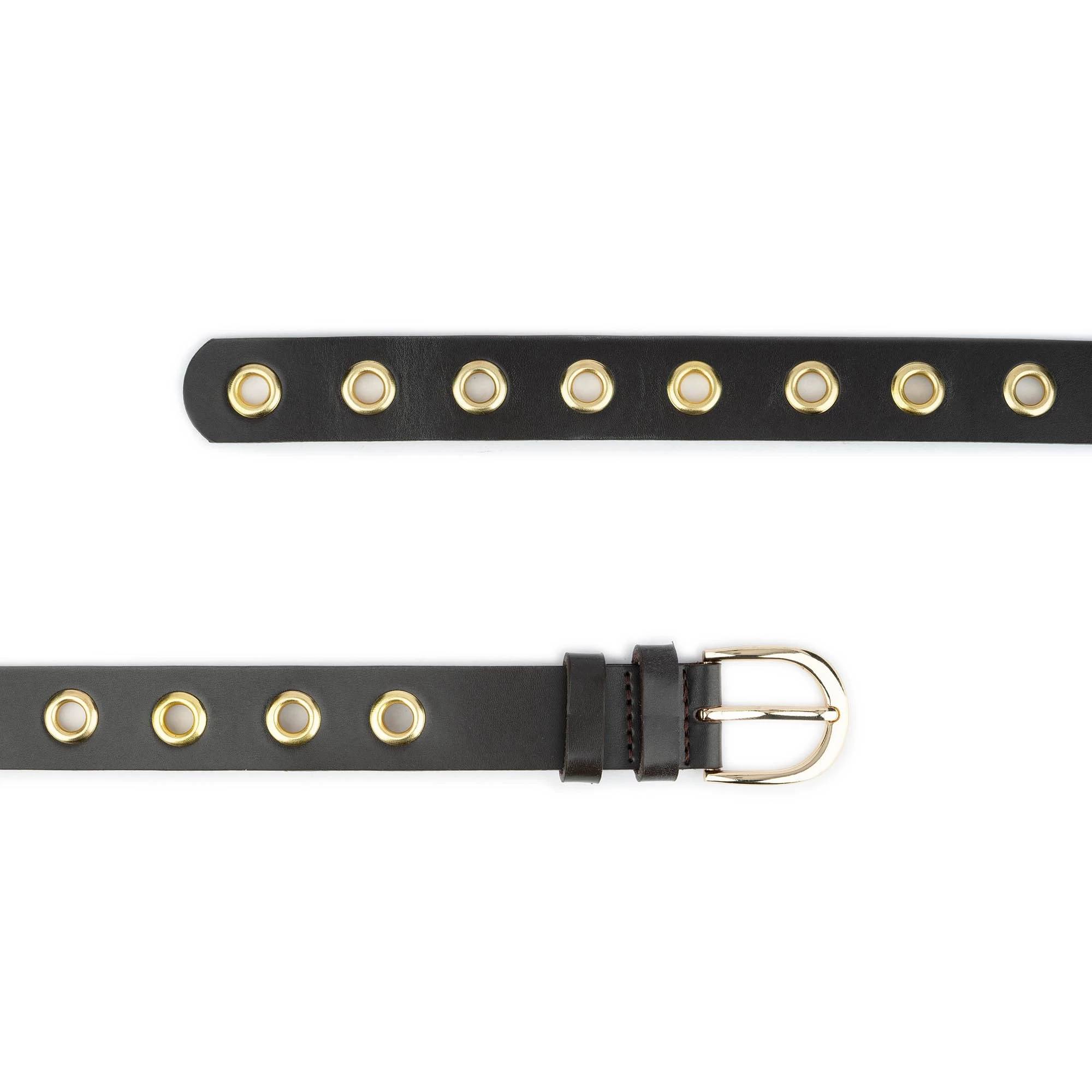 Buy Brown Leather Gold Eyelet Belt at LeatherBeltsOnline.com – 1 1/8″ (3.0 cm) wide – Black color – Genuine leather – Gold color buckle and gold studs – Model code EYEGOL30BROWEL