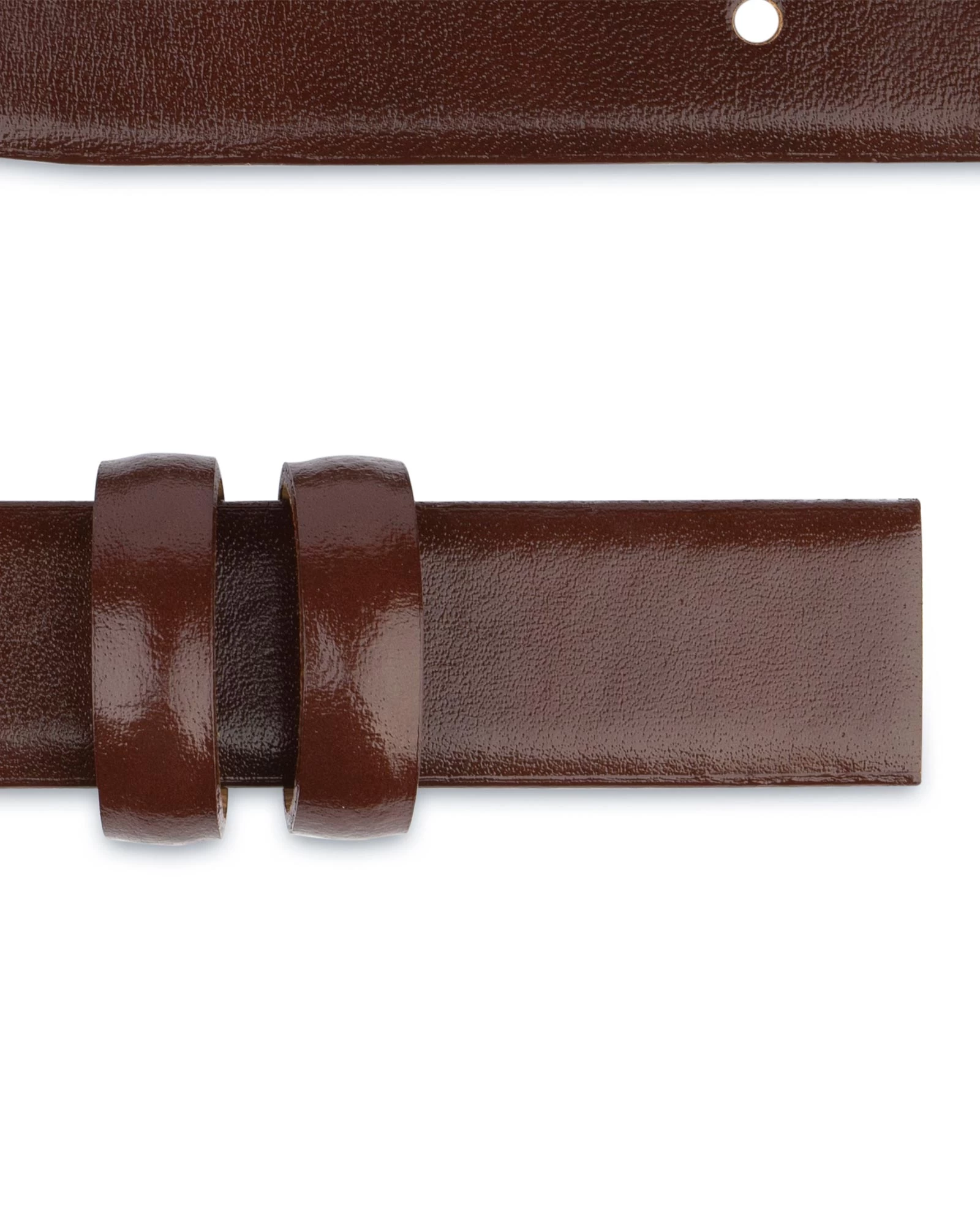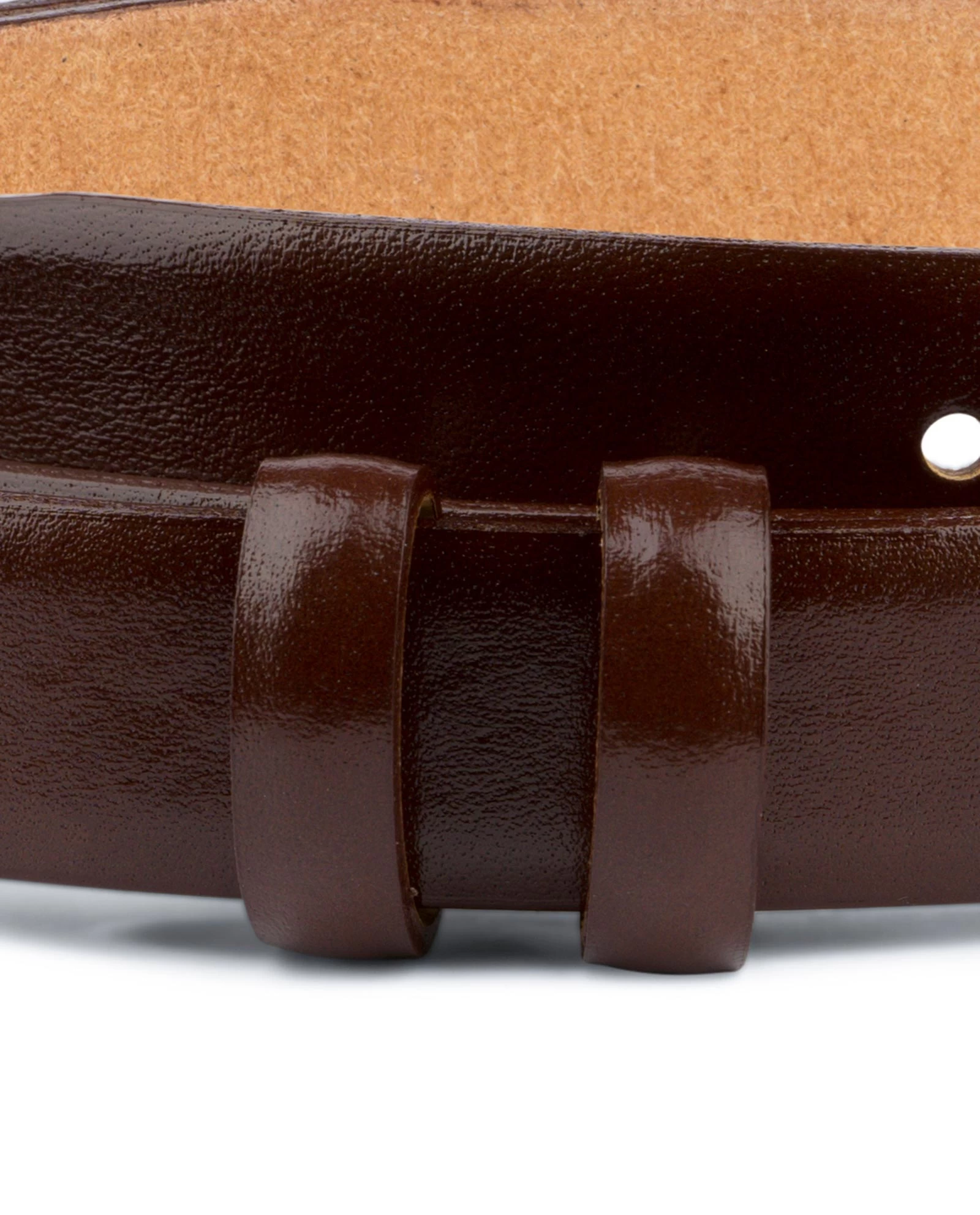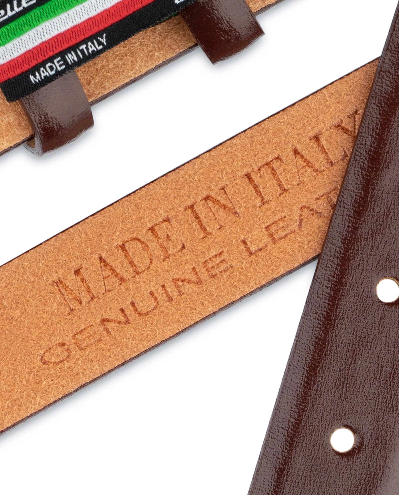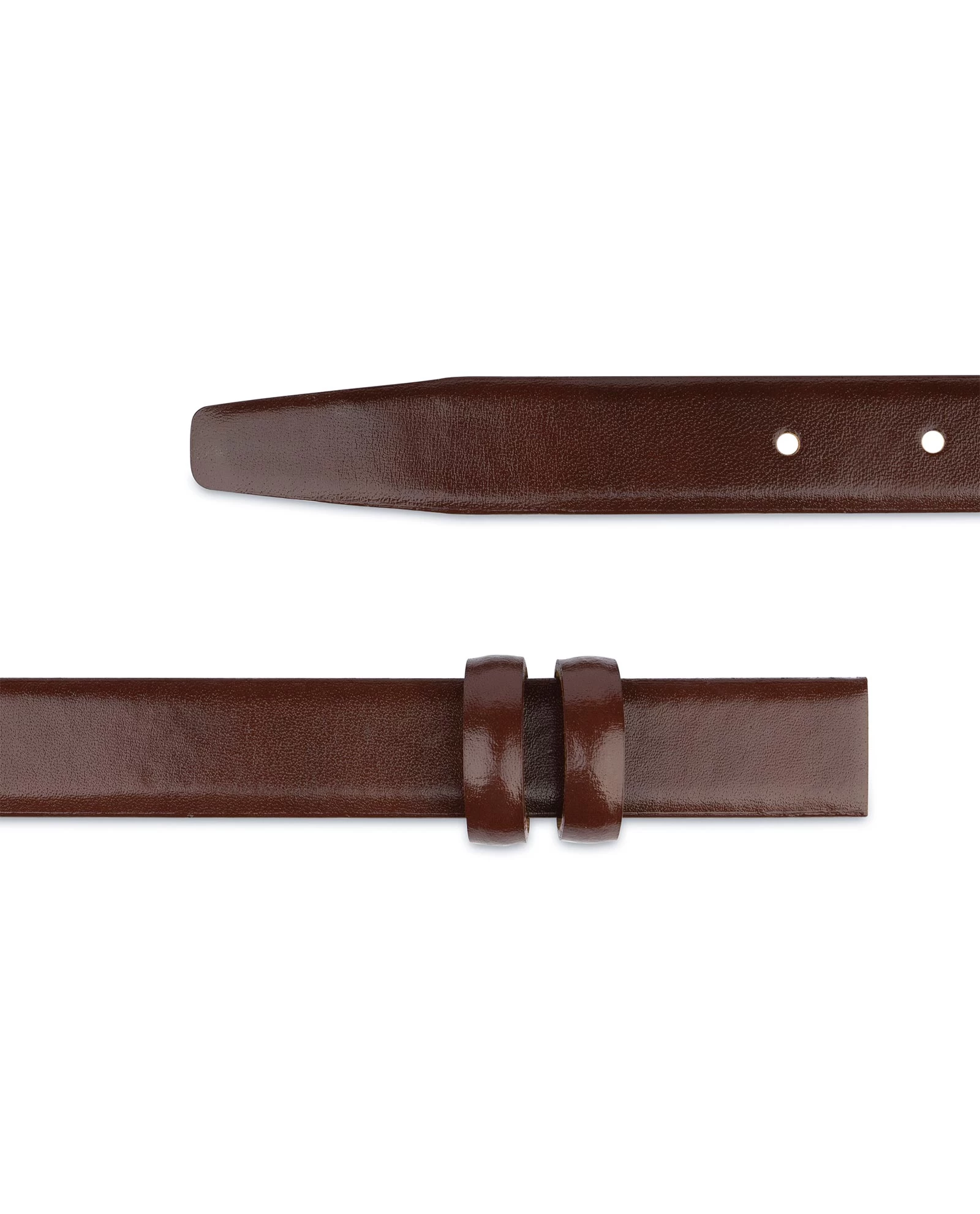 A luxurious dark brown leather belt without buckle is to complement your style and any collection of one’s accessories. The saturated cognac-colored, thin in width leather strap by the Capo Pelle brand perfectly suits both women’s and men’s pants in the relevant color scheme & style. The replacement belt strap is always in trend; it’s a convenient and functional accessory.