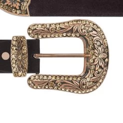 Buy Brown Suede Cowgirl Rhinestone Belt With Copper Buckle at LeatherBeltsOnline.com