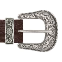 Buy Brown Wide Cowboy Western Belt With Silver Floral Buckle at LeatherBeltsOnline.com