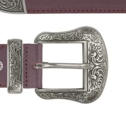 Buy Burgundy Leather Cowboy Belt With Silver Buckle at LeatherBeltsOnline.com