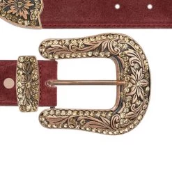 Buy Burgundy Suede Western Belt With Copper Rhinestone Buckle at LeatherBeltsOnline.com