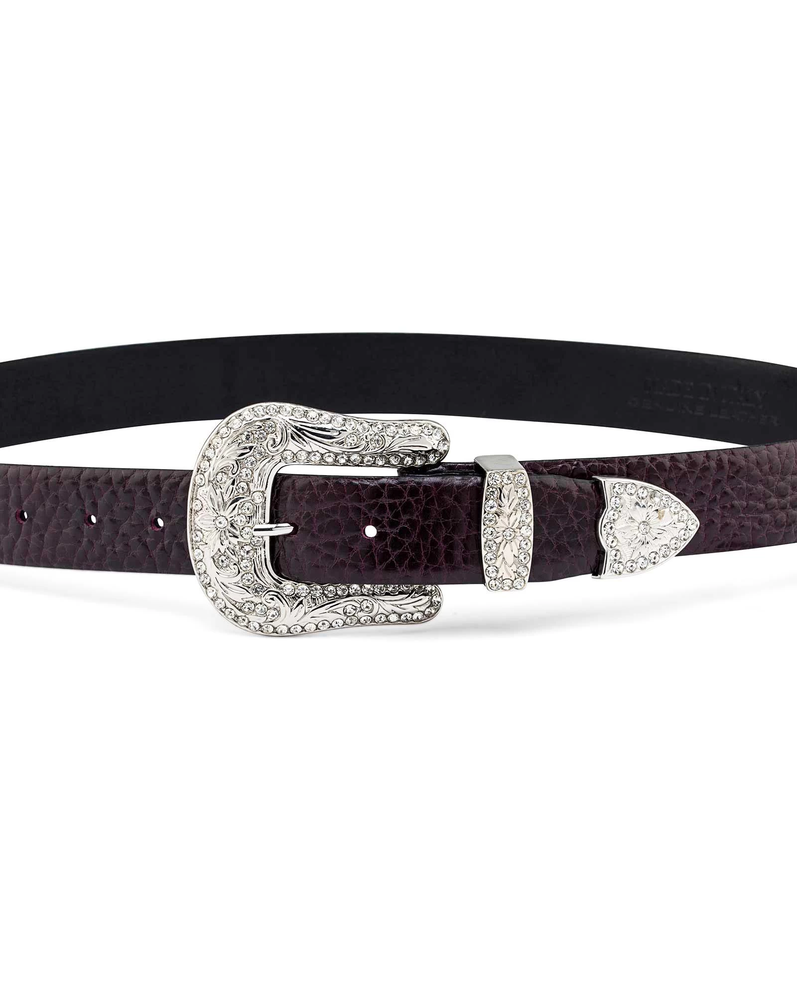 Bold, effective and efficient all under one buckle, you cannot miss out on this frenzy! Capo Pelle belt design will have you looking polished and stylish one strap at a time. This burgundy western women’s rhinestone belt is a great fit for any occasion, the rich and smooth texture cannot go undefined. Capo pelle design always live up to the expectation with every piece they manufacture. The incorporate genuine Italian leather in all their accessories, the leather is cut to perfection and then turned to achieve that rich burgundy color. Regarded as one of the most stylish wide belts for women, this belt should definitely be one of your most cherished accessories. The belt features a striking silver rhinestone buckle that puts the whole look into perspective. Get yours today at an affordable price.