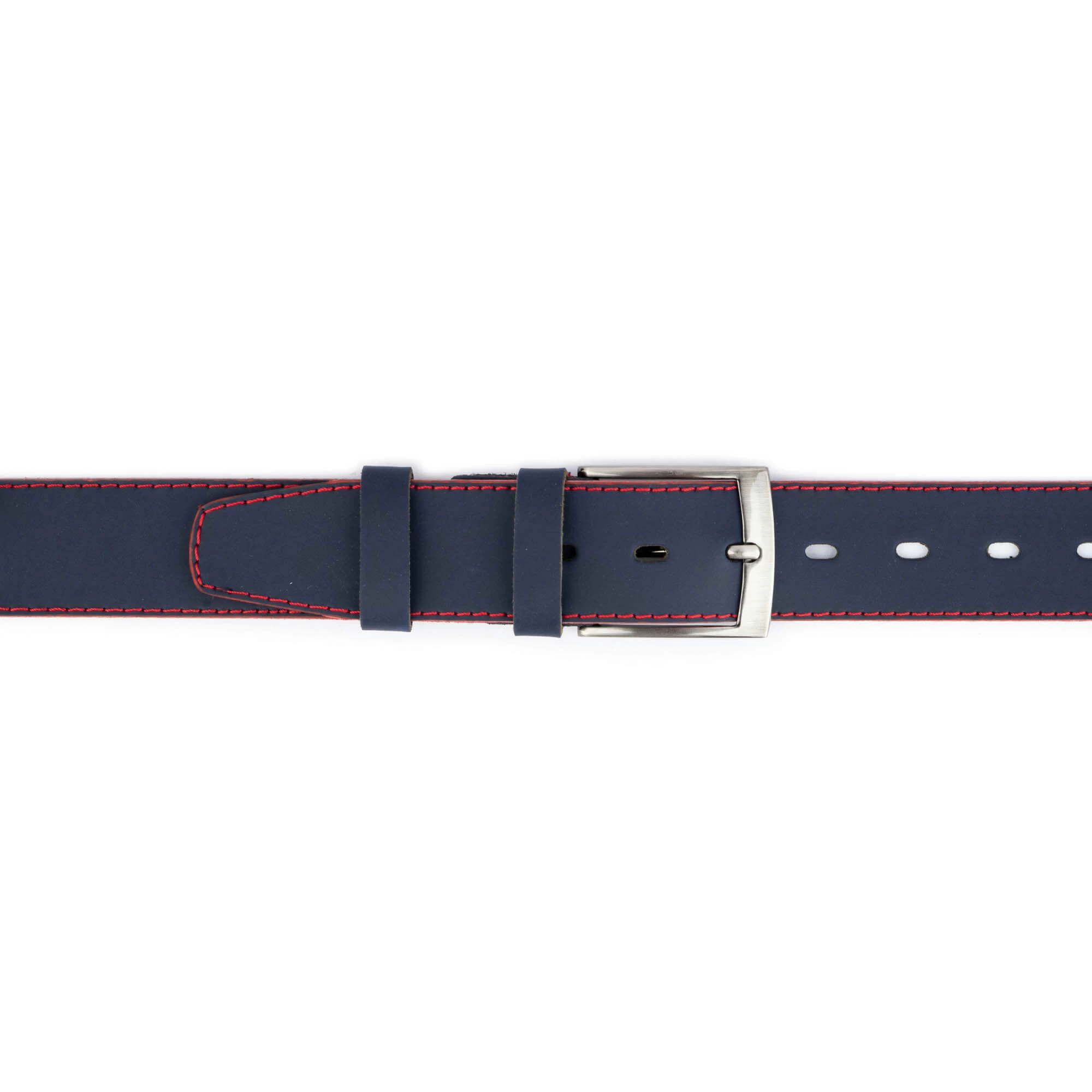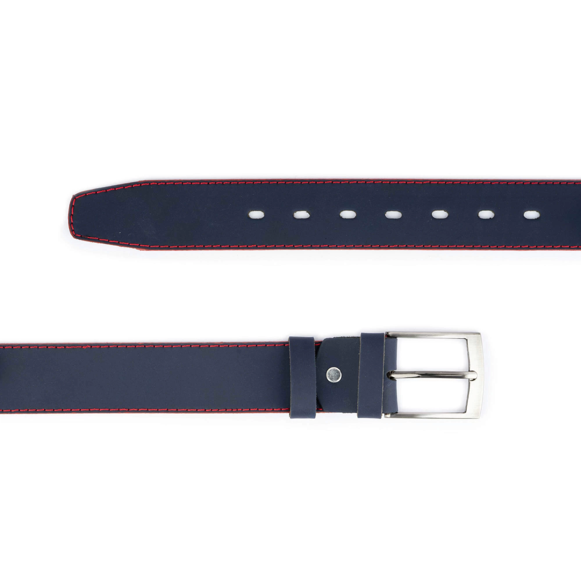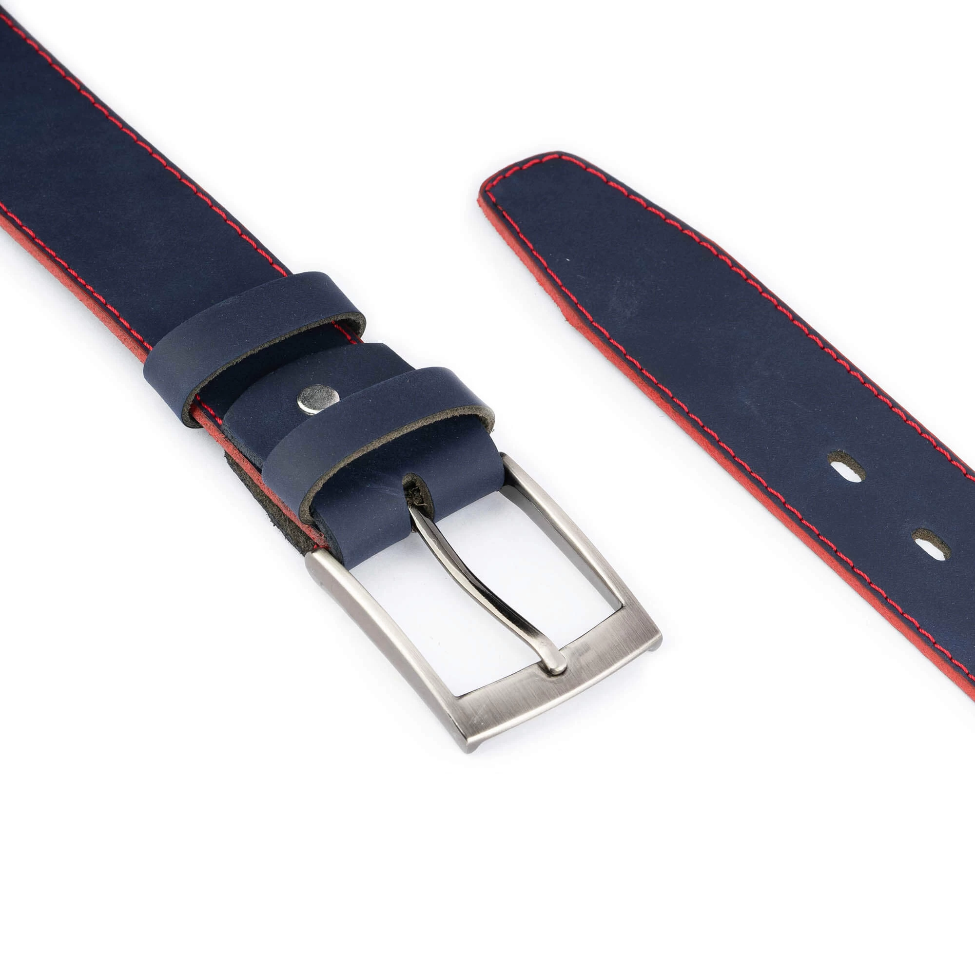 Buy Casual Men’s Belt For Jeans – Blue With Red Stitching at LeatherBeltsOnline.com