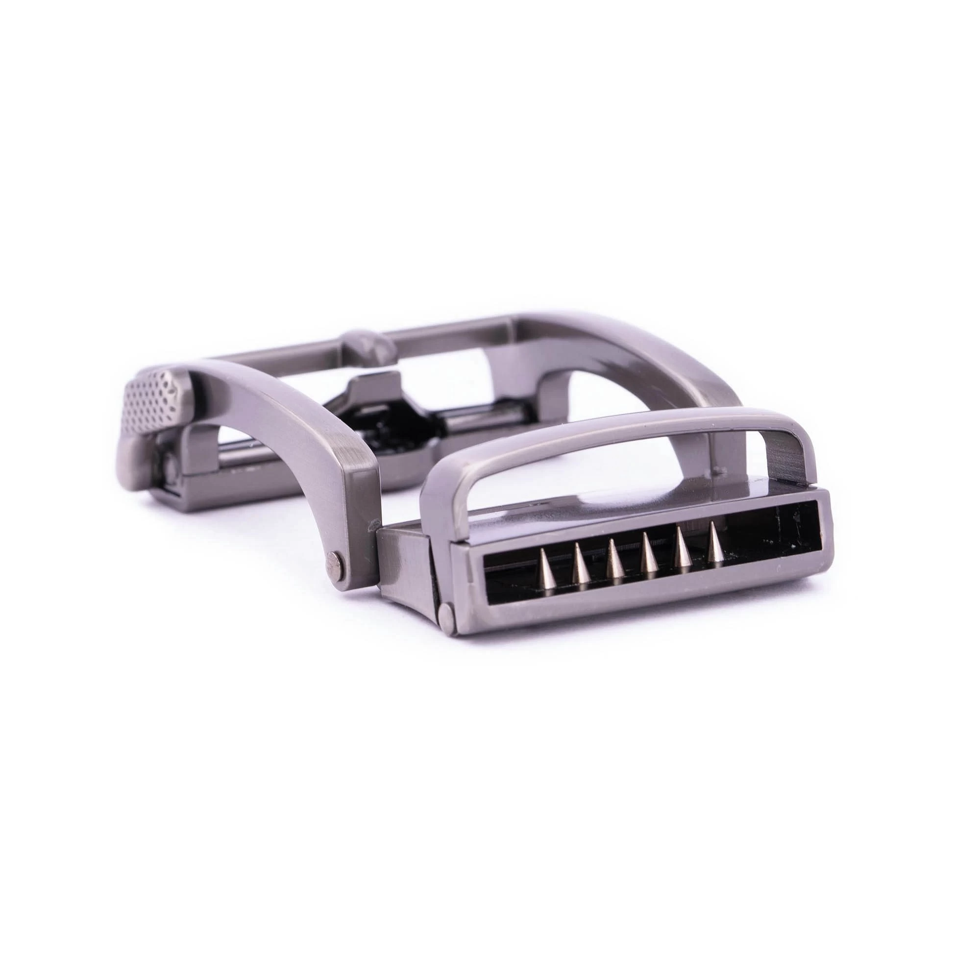 Buy Classic Slide Belt Buckle Gray Mens at LeatherBeltsOnline.com – Inner width 1 3/8″ (35 mm) – Gray color – Metal – Model code CLARAT35SQUGRA