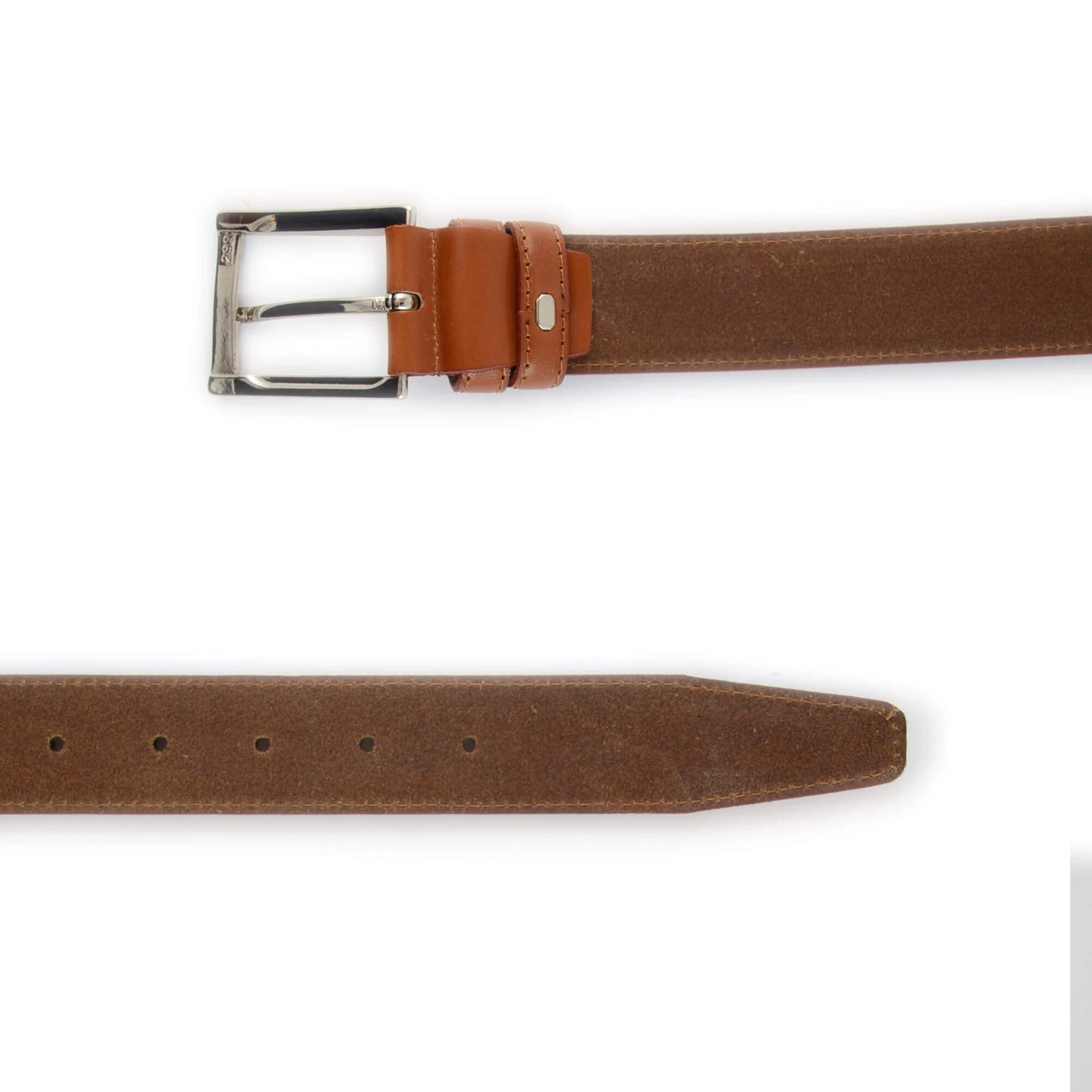 Our belts are measured from where the buckle is attached to the belt all the way to the middle hole.