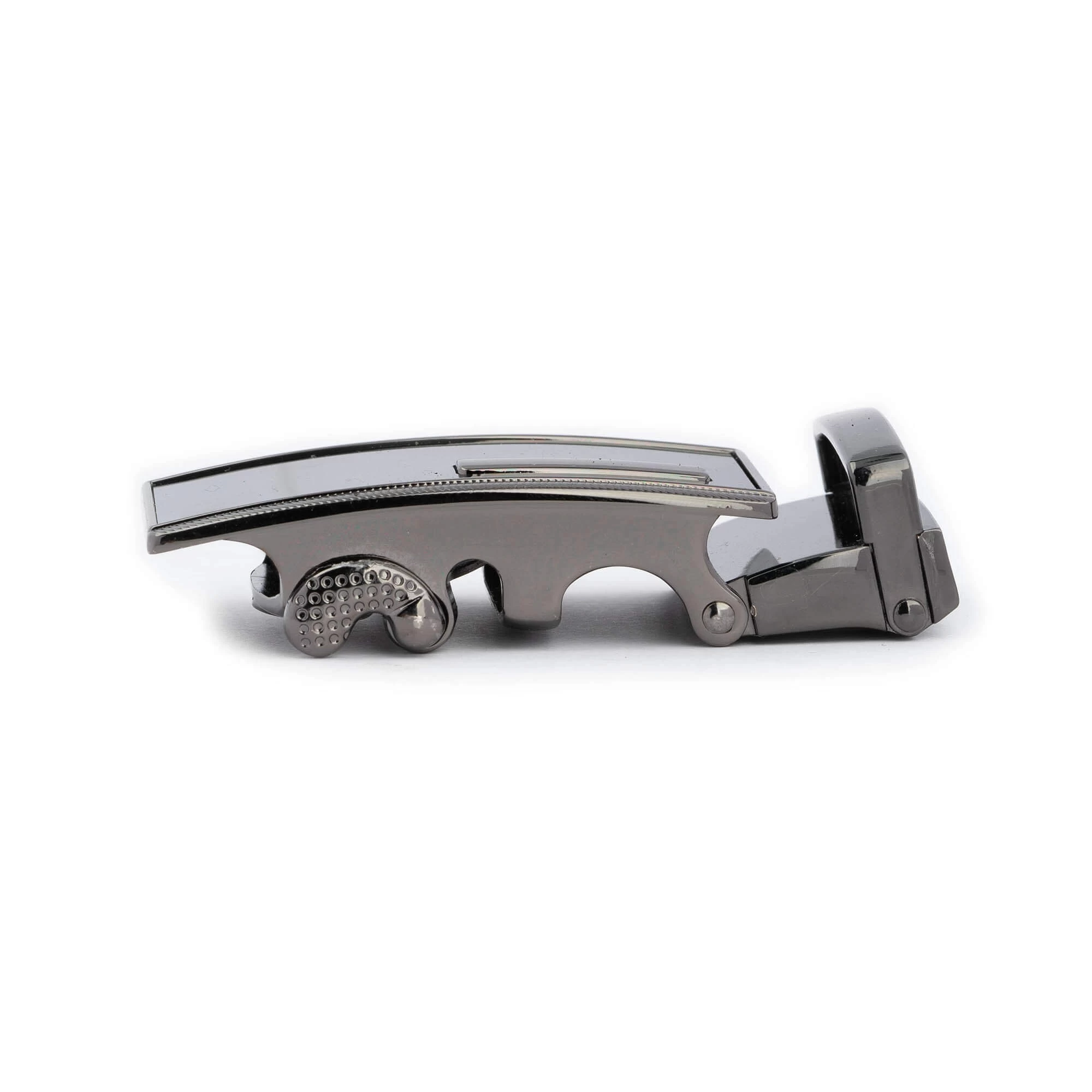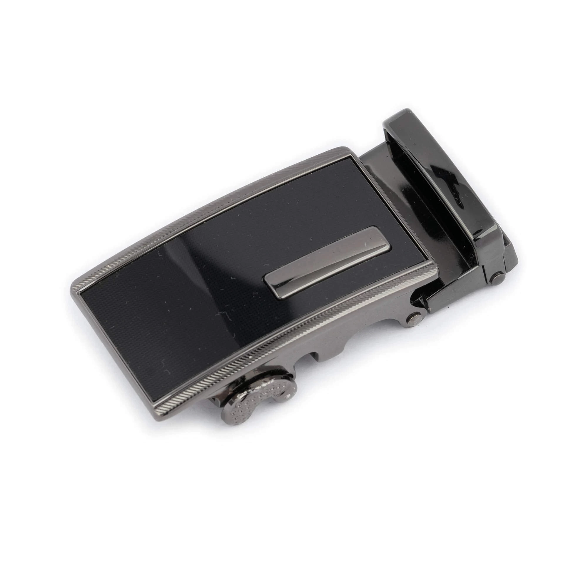 Buy Cool Mens Ratchet Buckle For Belts at LeatherBeltsOnline.com – Inner width 1 1/8” | 3.0 cm – Gunmetal black color – Metal – Model code RATBLA30GNMALG