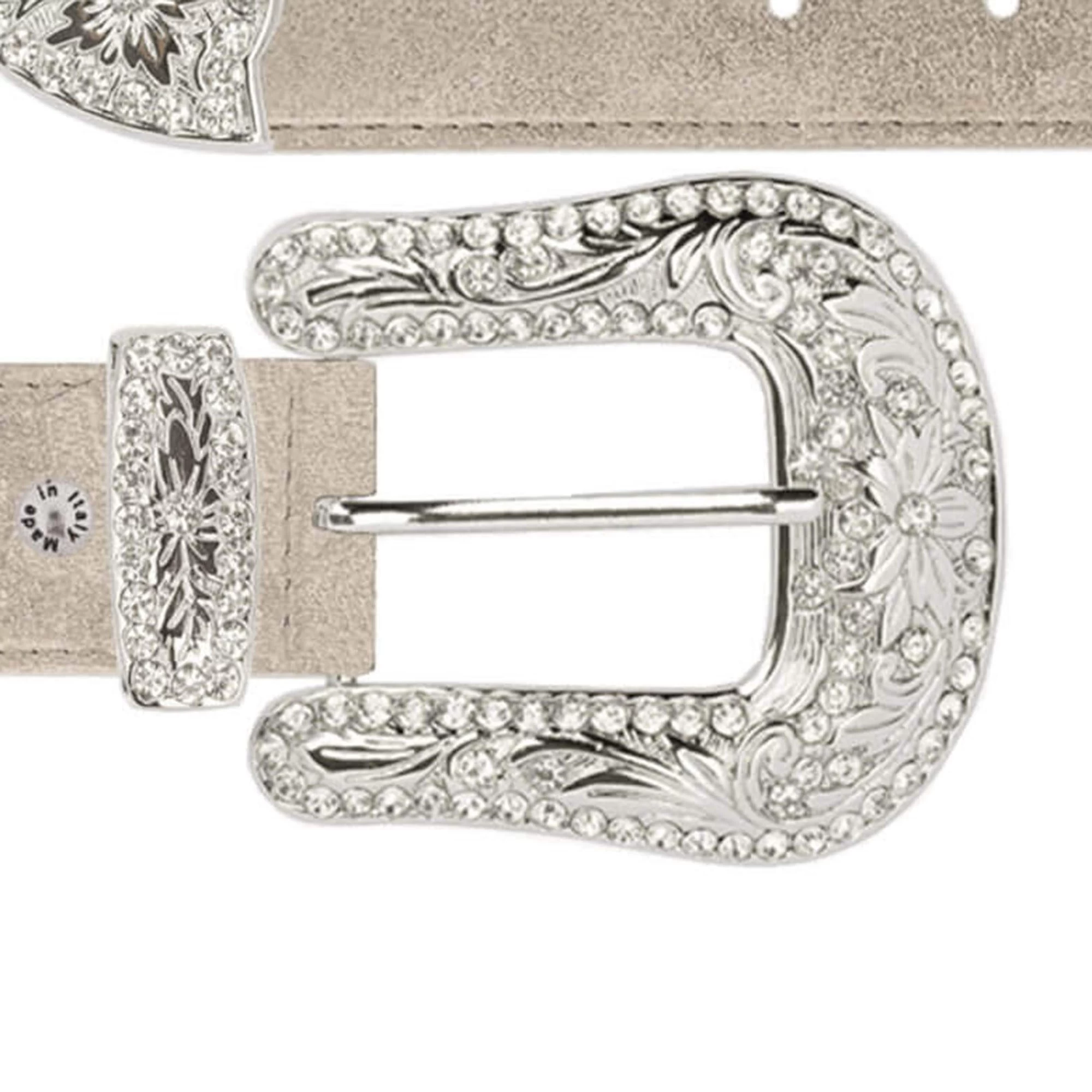 Buy Cowgirl Crystal Buckle Belt – Taupe Suede Leather at LeatherBeltsOnline.com