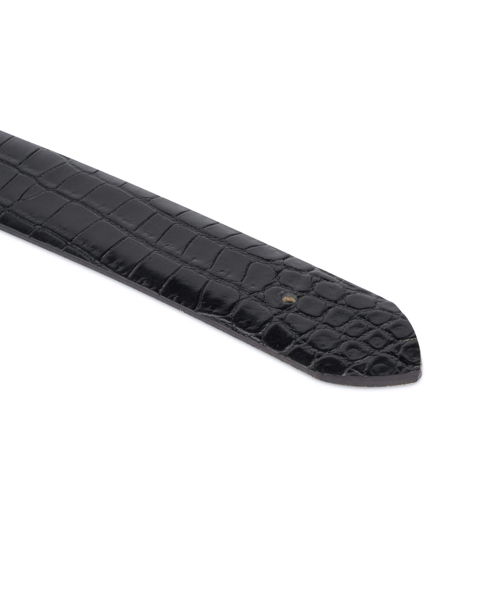If you are in search of a certain distinctive but really stylish and contemporary belt, make it handly by using this elegant Croco embossed leather belt strap without a buckle and appropriate hardware. After all, it will be a one-of-a-kind belt and exclusively yours!