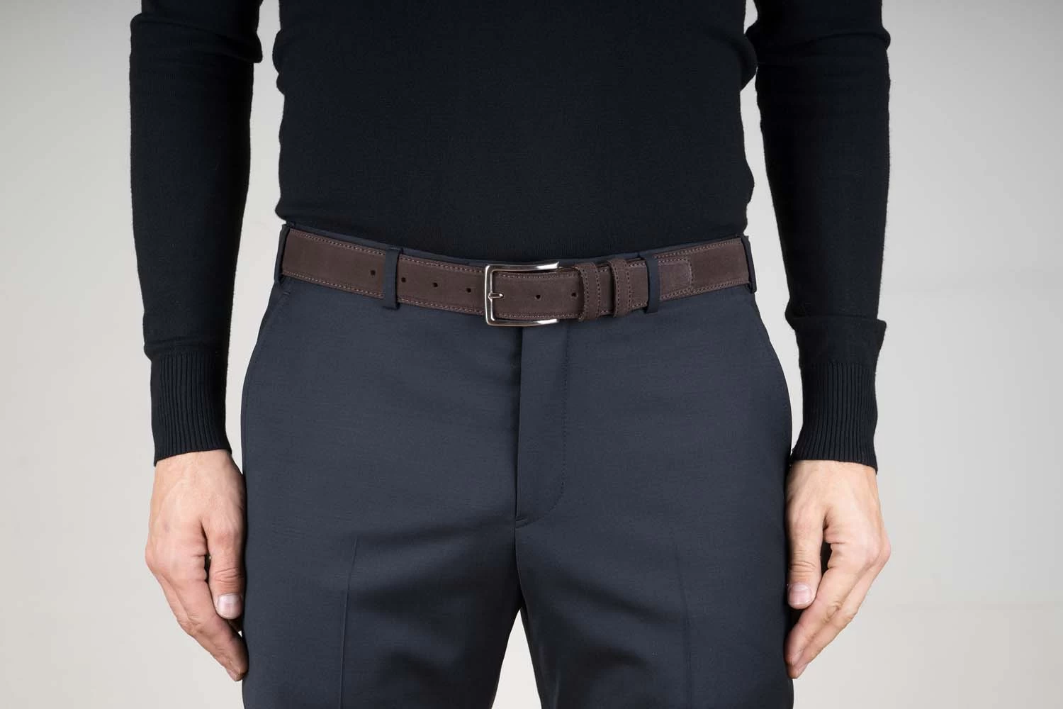 Just one tip: this dark brown suede belt, can be perfectly worn with brown chinos, jeans or classic brown trousers. There is nothing better than old good classics, but in a new, modern way – let everyone in the room see that!