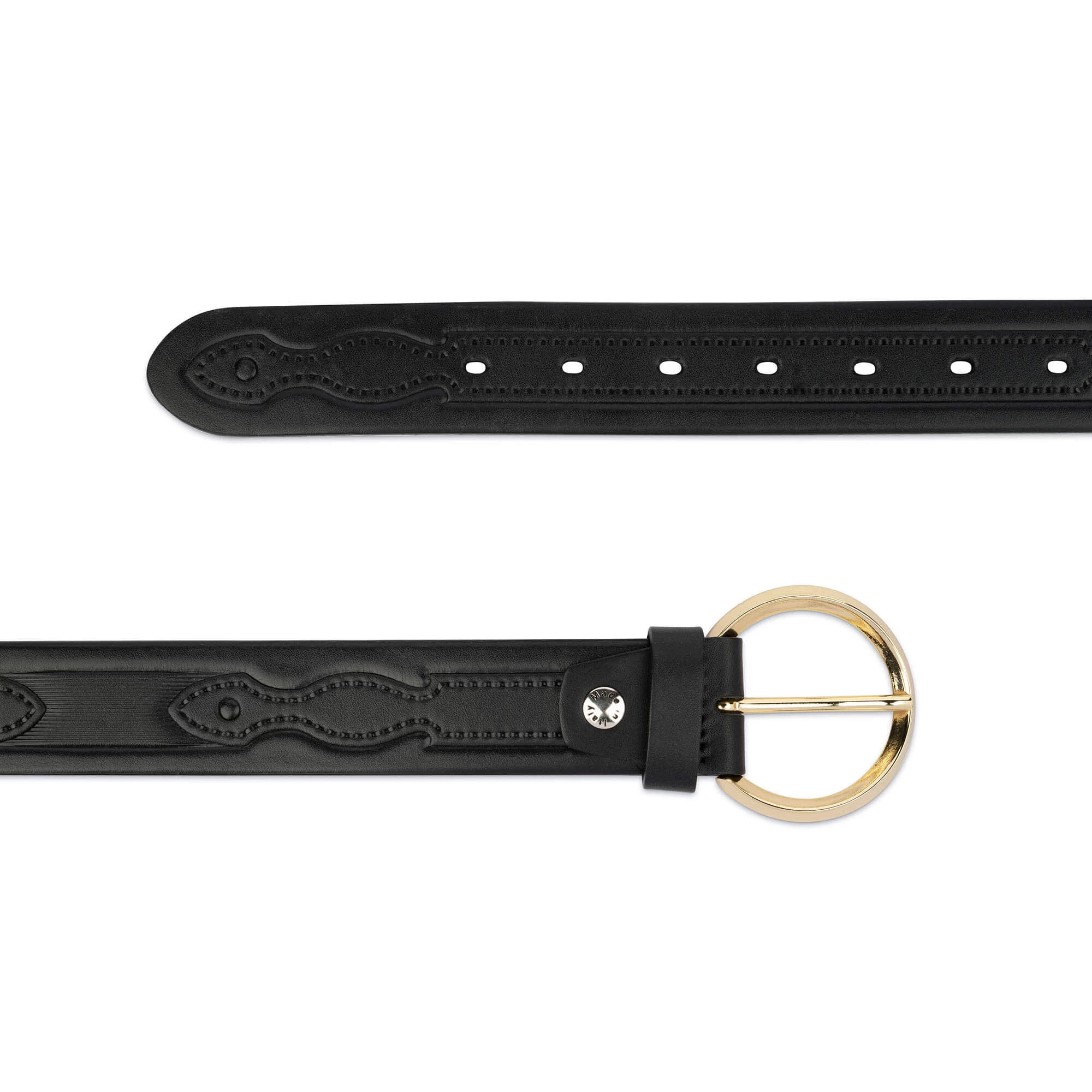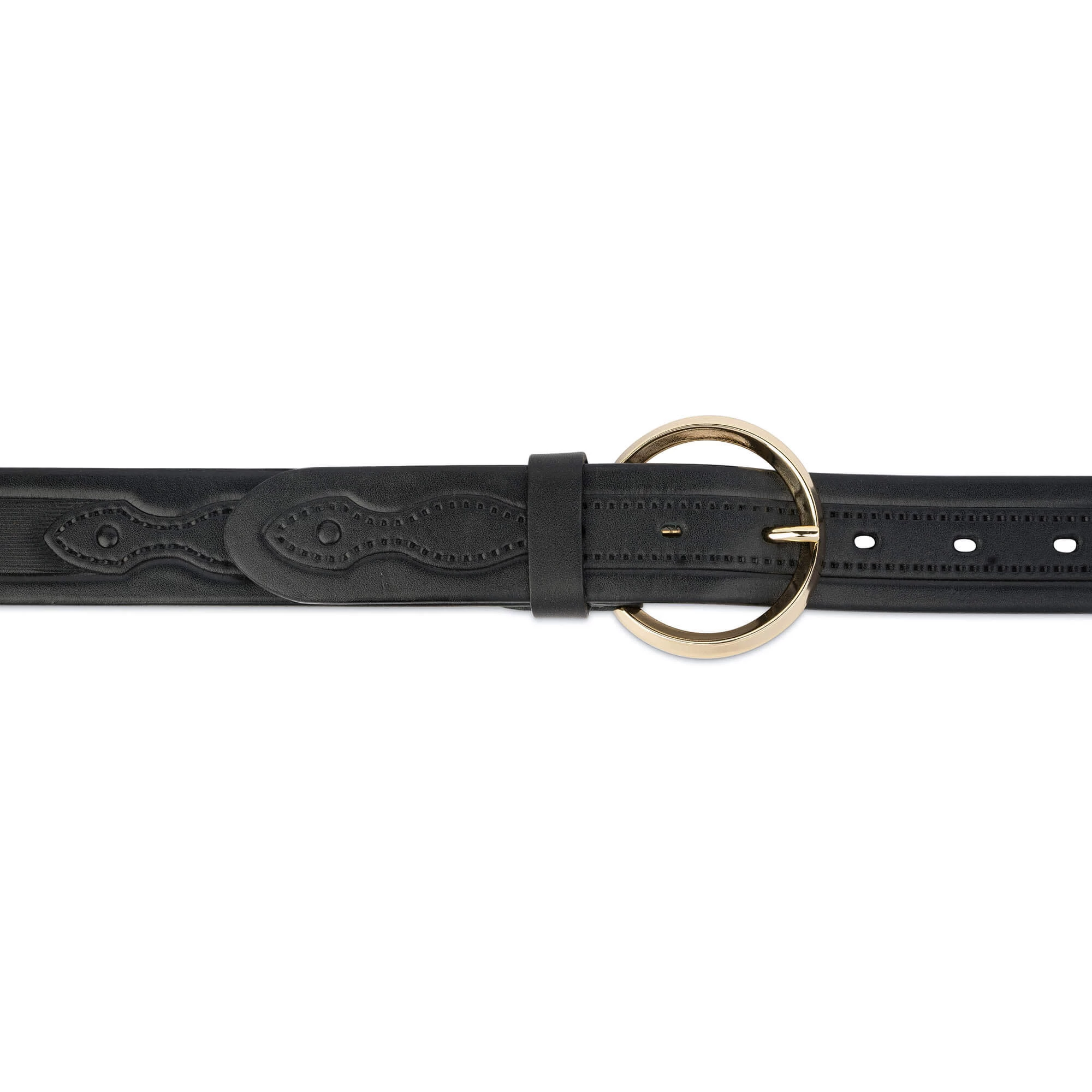 Buy Embossed Leather Belt With Gold Round Buckle at LeatherBeltsOnline.com