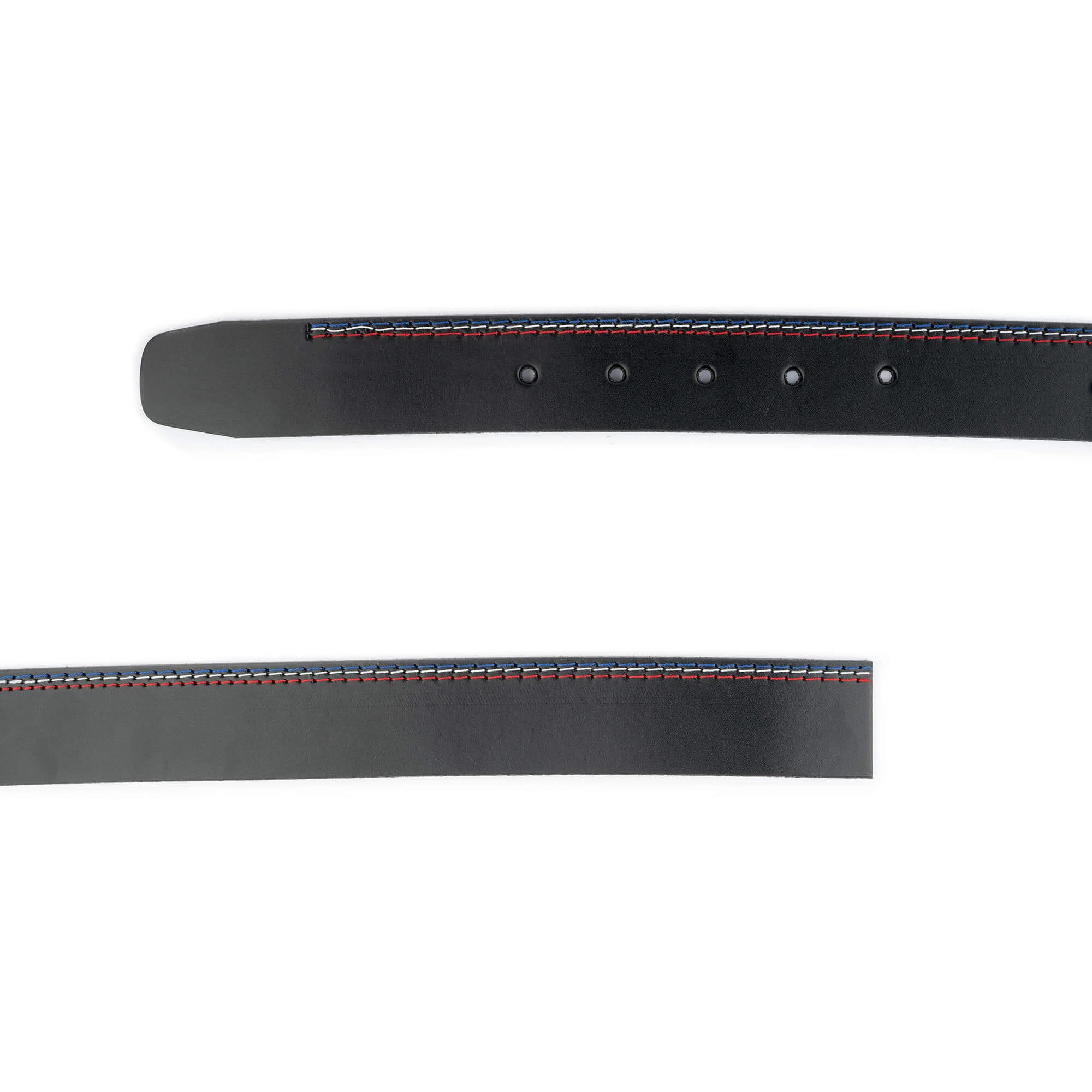 Buy Fashion Mens Belt Strap Black Colorful Stitched at LeatherBeltsOnline.com – 1 3/8″ (3.5 cm) wide – Black color – Genuine leather – No buckle – Model code COLSTI35CUTBLA